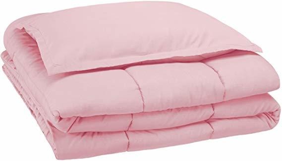 100% poliéster; Importado; Twin-tamaño edredón mide 66 por 90 pulgadas e incluye una farsa 20-por-26 pulgadas; Perfecto para el dormitorio de un niño, cuarto de huéspedes, dormir fuera de casa, y más; construcción de microfibra ultra suave con relleno de poliéster felpa; Cómodo de usar en todas las estaciones; lavable a máquina y secar; Hecho en OEKO-TEX Standard 100 de la fábrica, un sistema de certificación independiente que garantiza textiles cumplen con las normas ambientales de alta seguridad y. Color: rosa claro | Tamaño: Doble