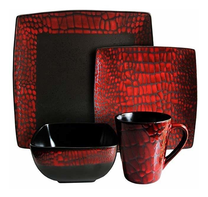 Especificaciones: Americana Atelier Boa De 16 Piezas De Vajilla Square, Rojo