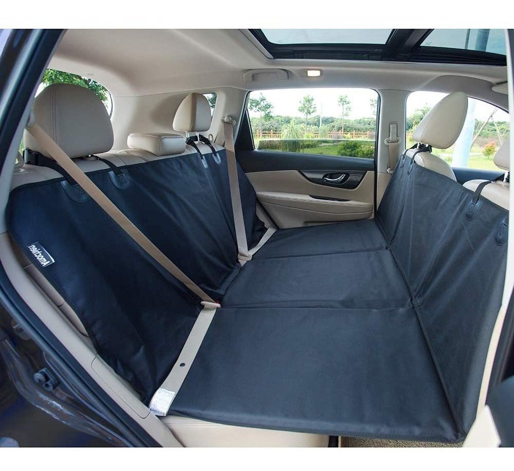 Bridge the Gap Between Front and Rear seat – The platform bridge features a solid, rigid base that maximizes backseat space, as well as provides a sturdy and secure footing for pets. It holds up to 150 pounds, fits backseat areas 26.5in x 54in and larger.; Soft Extended Platform – Built with a hardwood interior, wrapped with comfortable foam padding and made by heavy-duty oxford cloth support the largest breed of dogs without collapsing.; Safety First – Four headrest straps and two seat anchors will make sure your seat cover is secured to his place; there are also small openings for seat belts that can be used to securely tether your pet onto the bridge.Pet backseat extender includes barrier to prevent dog from distracting driving.; Muti-functional Easy to Install – The extender can be folded to accommodate for extra passengers or storage. It also can be installed and removed in only minutes!; Lifetime Warranty – Amochien backseat extender for dogs are protected by a no-hassle 100% Customer Satisfaction Guarantee Lifetime Warranty (defects in materials or workmanship). Todos nuestros productos estan en inglés SKU 10032240427