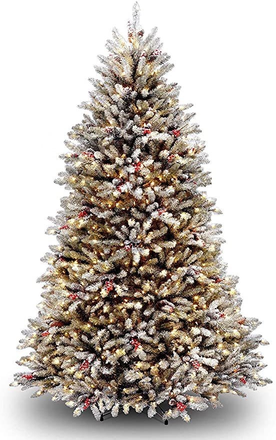 El árbol artificial Dunhill esmerilado de abeto de Navidad ofrece una atractiva gama de cerdas verdes helado. Adornado con luces blancas pre-colgado y adornado con piñas, bayas rojas y sacado el polvo nieve blanda, este árbol decorativo con su construcción rama bisagras no extraíble sube rápido, dejando más tiempo para la alegría de las fiestas. ramas de los árboles se pre-fijados en el poste central utilizando un sistema de bisagra, con cada rama rebajado en su posición en la preparación de conformación final. Un diámetro de 55 pulgadas en la base, también incluye un soporte del árbol de metal e instrucciones de montaje. Decoraciones y adornos no están incluidos. Todos nuestros productos estan en inglés SKU 7112000194