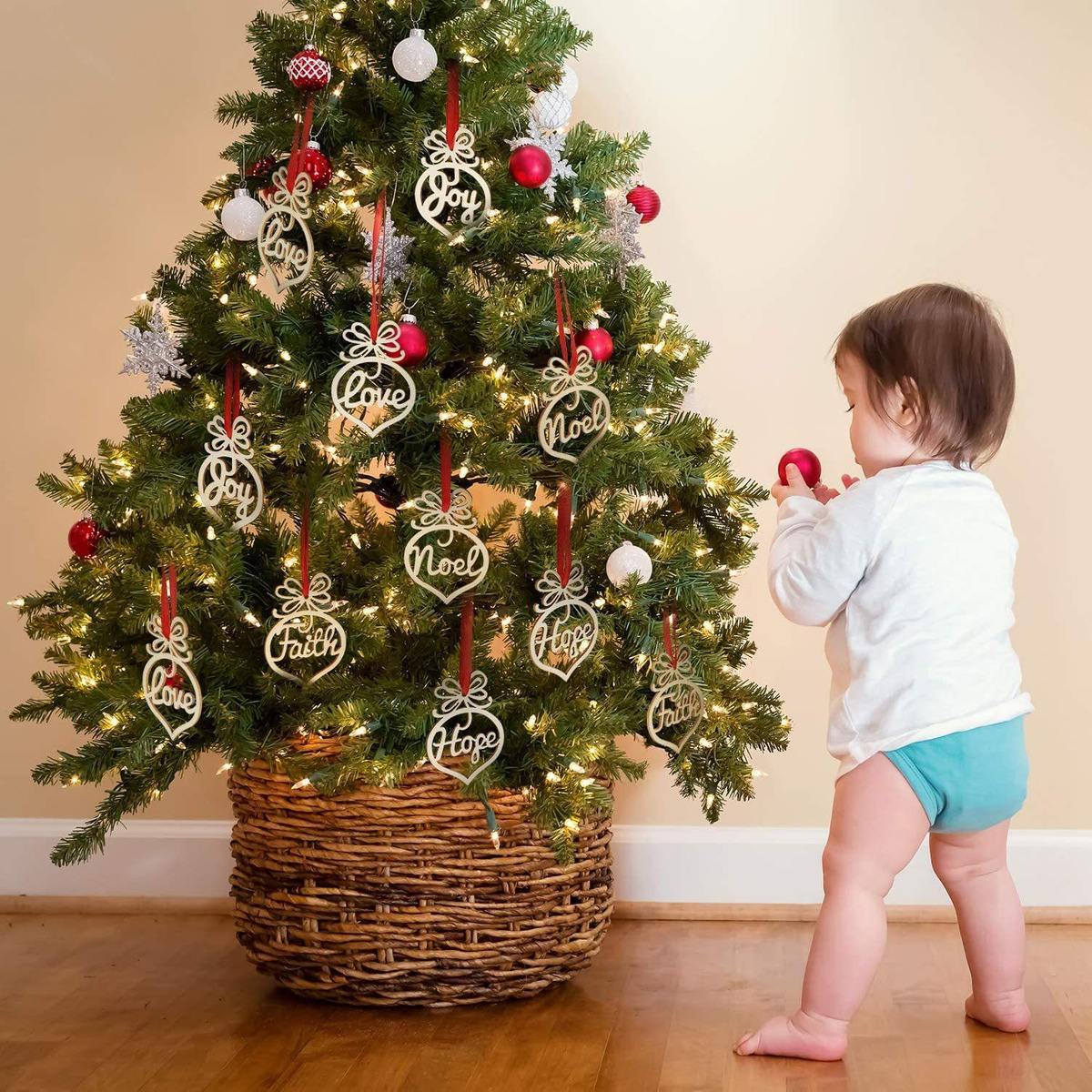 El paquete incluye: usted recibirá 54 piezas de Navidad colgar adornos de madera, en 6 estilos diferentes, lo suficiente para su decoración o necesidades artes de DIY; decoraciones Tema de Navidad: vienen con 6 patrones diferentes, incluyendo esperanza, amor, alegría, noel, la fe y la paz, exquisita y significativa, puede expresar sus deseos calientes a sus familias y la atmósfera se encuentran el festival; Detalles materiales: estos preciosos adornos colgantes de Navidad están hechas de madera de calidad, no tóxico y sin olor, duradera y no es fácil de deformar, ligero y fácil de colgar, que le puede proporcionar un uso mucho tiempo; tamaño apropiado: el adorno de madera hueco hacia fuera es de aprox. 9,7 x 7,2 x 0,3 cm / 3,8 x 2,8 x 0,1 pulgadas, la longitud de la cuerda roja es de aprox. 34 cm / 13,4 pulgadas, fácil para la cuerda pase a través de un orificio en cada etiqueta colgante; ocasiones adecuados: estos ornamentos de madera de Navidad no son sólo bellas decoraciones para el árbol de Navidad, ventana o chimenea, pero también maravillosos regalos de Navidad a sus familias y amigos Cantidad de artículos del paquete: 54