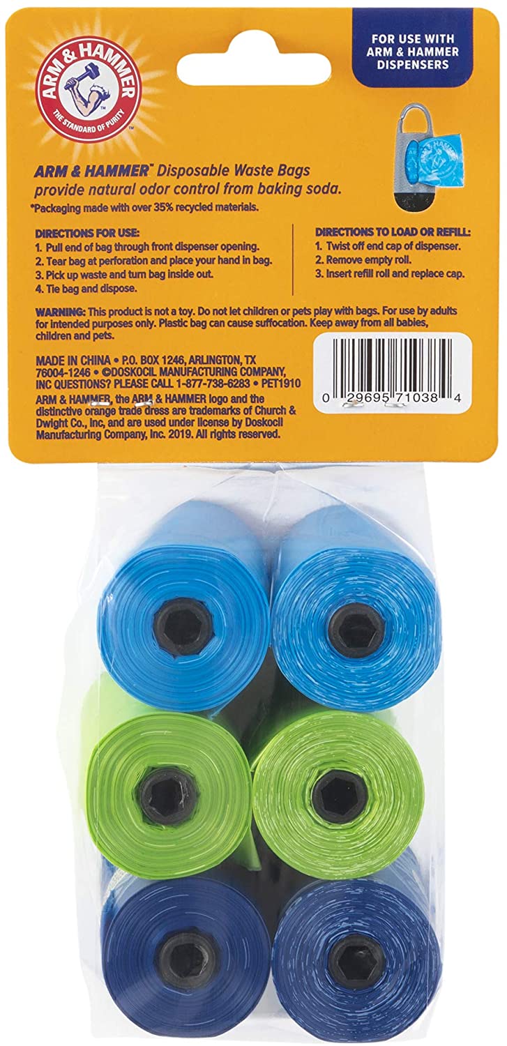 Especificaciones: ARM & HAMMER Easy Tear Repuestos desechables para bolsas de desechos de perros con control de olores disponibles en varios colores