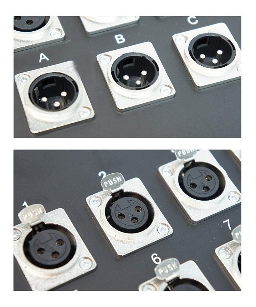 Simplificar la configuración en el escenario de nuestro cable Multicanal XLR de serpiente que están disponibles en una amplia gama de canales XLR y modelos de longitud de cable que son perfectas para el sonido en vivo o aplicaciones de estudio, eliminando las molestias de múltiples carreras confusas y voluminosos cables. Todas las conexiones están claramente marcadas en los extremos del cable con la información correspondiente en la propia caja de engranajes de hacer la identificación de una brisa. El cuadro de serpiente construcción de acero está diseñado para ser objeto de abuso y que utilizan conectores de gama alta para ambos en la entrada en la caja y el punto de transición de un solo cable a multi canales que simplemente no puede ser igualada. Los cables XLR cuentan con una chaqueta trenzada de nylon resistente construido a partir de 22 de calibre cobre libre de oxígeno con una doble espiral Escudo de rechazo de ruido superior.