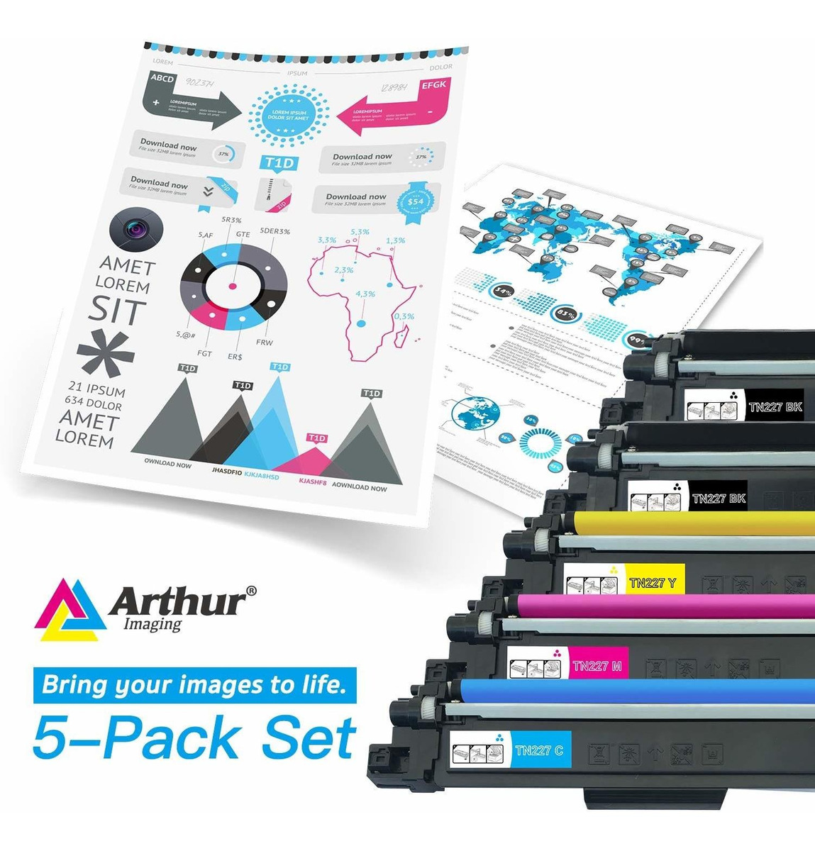 Incluye 2 TN227 negro, 1 Cyan TN227, 1 Yellow TN227, y 1 cartuchos de tóner Magenta TN227 Arthur imágenes (total de 5 Pack); Para su uso en las siguientes impresoras Brother: impresoras HL HL-L3210CW HL-L3230CDW HL-L3270CDW HL-L3290CDW, y MFC Impresoras Multifunción MFC-L3710CW MFC-L3750CDW MFC-L3770CDW, etc .; Negro Producción de páginas de tóner: 3000 páginas con una cobertura del 5% ISO19752; el color de tóner rendimiento de páginas: 2300 páginas con una cobertura del 5% ISO19752; Construido a los estándares de fábrica ISO9001 e ISO14001 Todos nuestros productos estan en inglés SKU 6042013837