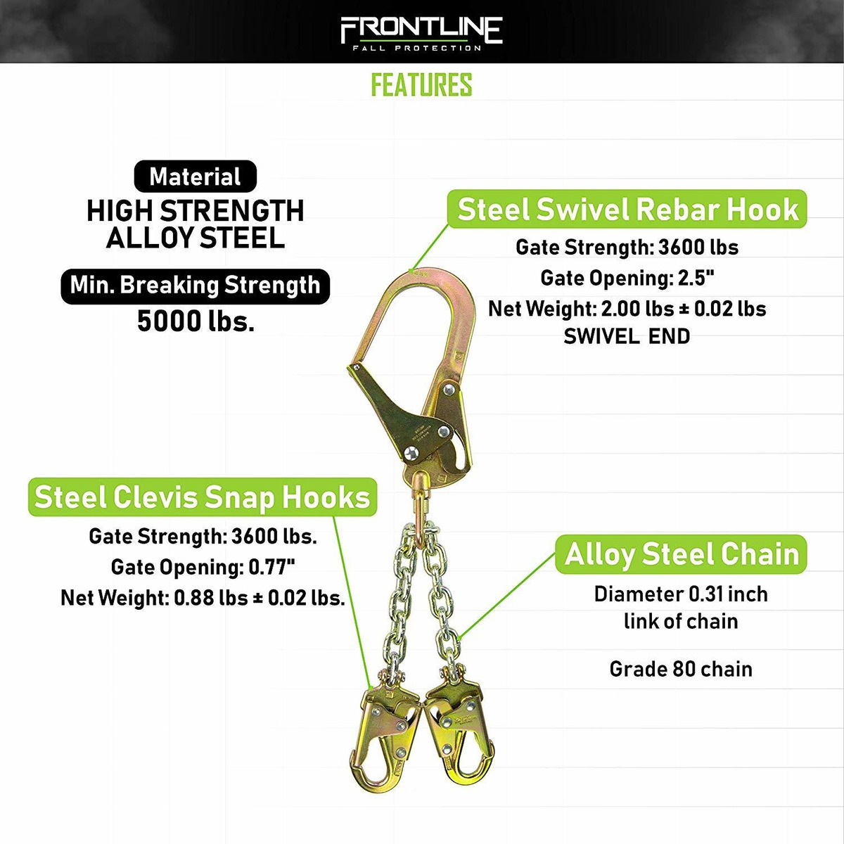 ¿ Este dispositivo de posicionamiento incorpora una cadena de alta resistencia a la tracción de aleación de acero, 5/0 enlace torsión, cincado, grado de la Cadena: Grado 80 (Link Straight) .; ¿ Los dos extremos de la cadena tienen el gancho especial forjado Clevis Snap, utilizado para el posicionamiento .; ¿ Permitir que los trabajadores se inclinan, se estiran y se mueven alrededor de los puntos de anclaje, manteniendo las manos libres y sentirse protegida .; ¿ Incorpora el gancho forjado barras de refuerzo con un ojo giratorio para un fácil movimiento impulsado por las cadenas giratorias para un mejor posicionamiento. Resistencia a la tracción: Min. 10.000 lbs, Capacidad: 310 lbs .; ¿ Cumple o supera ANSI Z359.14-14, ANSI A10.32-12, OSHA 1926 Subparte M, OSHA 1910 Tamaño: 1 Pack