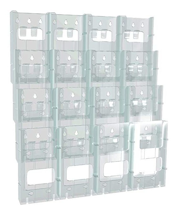16-bolsillo de la pared del tamaño de tres veces de montaje de pantalla. Uso para impresa de medición material de 4,125 pulgadas W x 9 pulgadas H. Hecho de estireno cristal. 16 Tamaño de bolsillo tríptico de montaje en pared; Hecho de cristal de estireno; Se envía desarmado; Add-A-bolsillo opción availabe Todos nuestros productos estan en inglés SKU 6102012222
