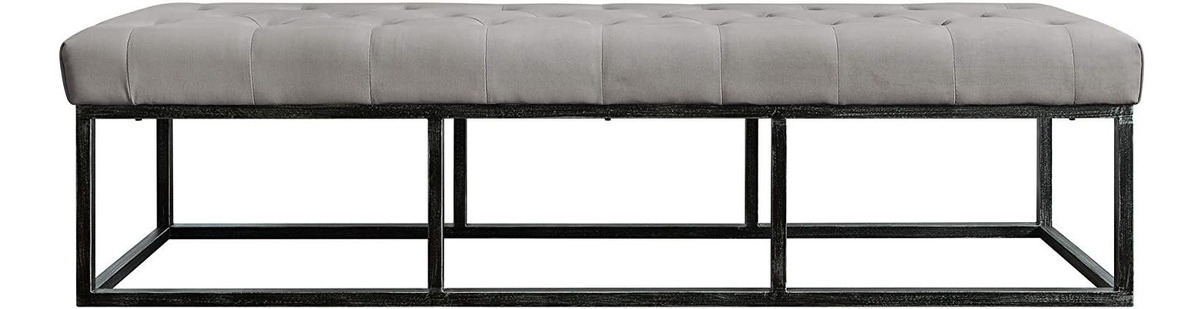 Fabric; Imported; STYLISH AND FUNCTIONAL: Comfortable bedroom bench with elegant tufting; VERSATILE CUSHIONED SEATING: Great for your bedroom, living room, or entryway. Perfectly sized to fit a king size bed.; CLASSY AND CONTEMPORARY: Low profile with iron legs and frame; SOPHISTICATED COLOR: Elegant shades and fabric textures to choose from; QUICK AND EASY ASSEMBLY: All necessary tools are included Color gris