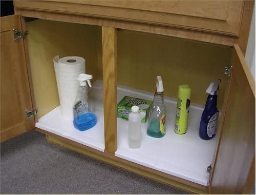 Vance bandeja de revestimiento base del disipador protege gabinetes de derrames y goteras en las tuberías o botellas; Hecha de un material durable, fácil de limpiar poliestireno; Desmontable para facilitar el acceso y la limpieza; Incluye boquilla de desbordamiento para advertir de fugas; Fácilmente recortado para adaptarse a los armarios más convencionales; 36″ puede ser recortado hasta 33.25″ x 22.25″ Todos nuestros productos estan en inglés SKU 15042029978