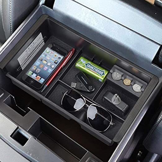 Compatibilidad: Consola central única bandeja para 2015-2020 GMC Yukon / Yukon XL; 2014-2018 GMC Sierra 1500; 2015-2019 GMC Sierra 2500HD / 3500HD; 2015-2020 Chevy Tahoe / suburbano; 2014-2018 Chevy Silverado 1500; 2015-2019 Chevy Silverado 2500HD / 3500HD Accesorios. Completo centro de la consola w / asientos de cubo en algunos modelos; A medida que el Chevy originales apoyabrazos cuadro es tan profundo y todo sólo se perdió en la parte inferior, la oferta de este organizador consola central para que usted pueda organizada y resolver sus artículos más fácil .; Diseñado para un ajuste exacto, este organizador transforma la papelera de altura en un compartimiento de almacenamiento de dos niveles. Los artículos más grandes se pueden almacenar por debajo del organizador, mientras que los artículos más pequeños almacenan superior, tales como: plumas, monedas, goma, CD, teléfono, artículos más utilizados y las cosas al azar .; Se adapta perfectamente Chevrolet Tahoe Silverado Suburban y GMC Sierra Yukón, ya que su tamaño es lo mismo con la caja original del coche apoyabrazos, el color se combinan perfectamente, fácil instalar en su consola central .; Fabricado en plástico ABS Inodoro con acabado mate, se deja lo suficientemente resistentes para soportar el impacto que conduce en el camino. Cada compañía bandeja de inserción con cosas almohadilla de goma antideslizante evitarán que se deslice, y el ruido de evitar. Todos nuestros productos estan en inglés SKU 70720052416