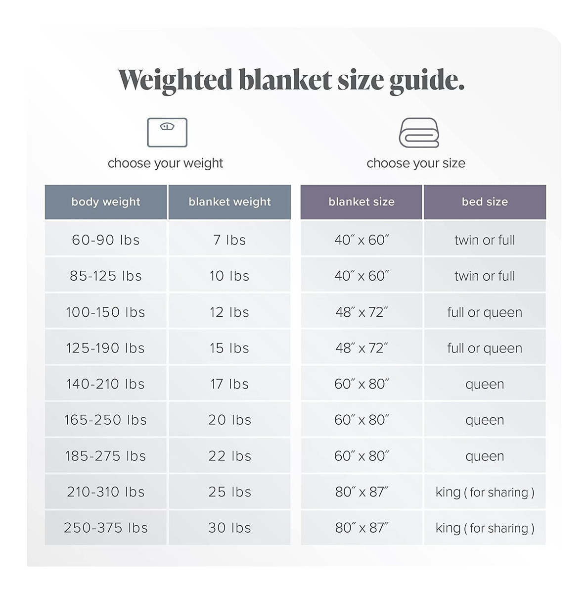 RELAXING COMFORT: After a long day, you need to unwind. So, go ahead. Wrap yourself up with Bare Homes cotton weighted blanket. Designed to mimic the sensation of being held with calming breathable pressure. Our weighted blanket provides sensational comfort to help achieve the most relaxing night of sleep.; NEW IMPROVED DESIGN: Get the sleep youve been missing! Our redesigned weighted blanket includes smaller pockets, reinforced stitching and increased filling to keep your beads from shifting and leaking.; CHOOSING YOUR WEIGHTED BLANKET: Unsure of what weighted blanket to choose We recommend picking a weighted blanket thats around 10% of your body weight. If youre in between sizes rounding up usually does the trick. For sizing, we suggest purchasing a weighted blanket that reaches from your chin to your feet without hanging over the sides of the bed.; EASY CARE: Machine wash on gentle settings or handwash. Tumble dry on low or hang to dry. Each weighted blanket comes with corner ties for use with a duvet cover to make cleaning a breeze (cover not included).; REST ASSURED: Your first 30 nights are on us. Literally. If you dont love our weighted blanket, send it back. Todos nuestros productos estan en inglés SKU 91221015550