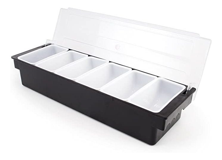 Mantenga su comida fresca y refrigerada! Sostiene frutas, verduras, salsas, salsas, aderezos, condimentos, aderezos y para barras de ensaladas, cócteles y más. Utilice nuestra estación de condimento para las comidas frías de restaurantes, bares de comida, picnics, barbacoas y fiestas catering interior / exterior. Esta estación sirve está en el puesto 19″ x 5,5″ x 3,5″ . Esto hace que sea fácil tener su propio taco, helado relleno, o la barra de ensalada en un restaurante o en su cocina personal. Como se trata con seis bandejas de lujo que se ajustan a 16 onzas de una pieza de líquido, encontrará estas bandejas pueden caber más de las cuatro estaciones de bandejas habituales. está hecho de plástico resistente y tiene votos asideros ergonómicos en cada lado para que pueda llevarlo sin la preocupación de los derrames. Si’ re querer mantener fresco de la comida, fresca, y en conserva, asegúrese de colocar todo el recipiente en la parte superior del hielo, en un refrigerador o en una zona refrigerada de una mesa de buffet. Cuando haya terminado con él, simplemente colocando limpia las bandejas en el estante superior del lavavajillas mientras limpiando el resto.
