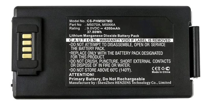 Modelos compatibles: batería de repuesto de alta calidad para 110300, 861304, M5066A, M5067A, M5068A, M5070A.; Parámetros de la bateríaEspecificaciones: Voltaje: 9.0 V, capacidad: 4200 mAh, 37.80 Wh, tamaño: 5.039 x 2.441 x 1.083 in, peso: 6.61 oz; Reemplazo perfecto: función circulatoria de alta capacidad, reemplaza perfectamente tus baterías originales. Asegúrate de seleccionar la batería correcta de acuerdo con tu modelo de producto original.; Certificación de calidad: certificación triple ROSH, CE y UL. Sin efecto memoria, sobrecarga, sobredescarga, sobrecalentamiento, sobrecorriente y protección contra cortocircuitos.; Servicio posventaGarantía de devolución de dinero de 14 días y garantía de 12 meses. Tu satisfacción es importante para nosotros, por favor no dudes en ponerte en contacto con nosotros con cualquier pregunta, soporte de correo electrónico 24 x 7. Tu proveedor de batería de parada.