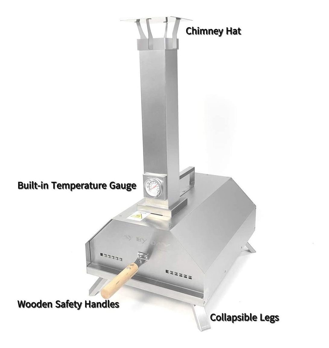 Este horno de pizza al aire libre de leña está diseñado para pizza casera rápida y fácil afuera. Una verdadera pieza central para cualquier fiesta de verano, barbacoa o viaje de camping. El fabricante de pizza de leña es fácil de usar, calentando rápidamente hasta temperaturas de 700 900 grados Fahrenheit para cocinar una pizza en minutos.