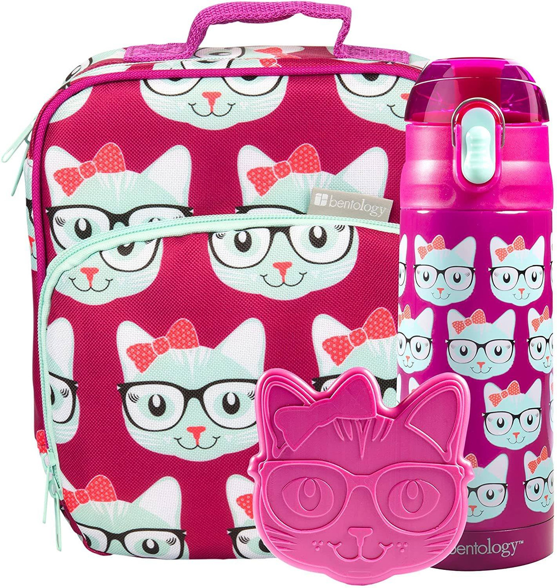 Bentology – Juego de loncheras para niñas, bolsa, botella de agua y bolsa de hielo, 3 piezas, gatito Todos nuestros productos estan en inglés SKU 91221046809
