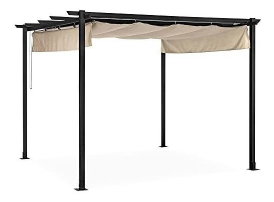 Best Choice Products Store DEDICATED SUN SHADE: A large, 100 square foot shaded space is ideal for comfortable outdoor entertaining year-round in light or heavy sun; OPEN AIR AMBIENCE: Draw back the sun shade and enjoy al fresco dining, conversation, or relaxation; RETRACTABLE CANOPY: Control the perfect balance of shade and sun with a retractable pulley system to move the canopy exactly where you need it!; QUALITY MATERIALS: Enjoy years of UV-diffusion thanks to low-fade polyester and a powder-coated steel frame to prevent corrosion and wear; MOUNTS ON MANY SURFACES: Use 16 included ground stakes to mount this pergola in your yard, concrete patio, wooden deck and more (additional surface hardware not included); OVERALL DIMENSIONS: 119(L) x 119(W) x 88.75(H) Todos nuestros productos estan en inglés SKU B07T9DJYD9
