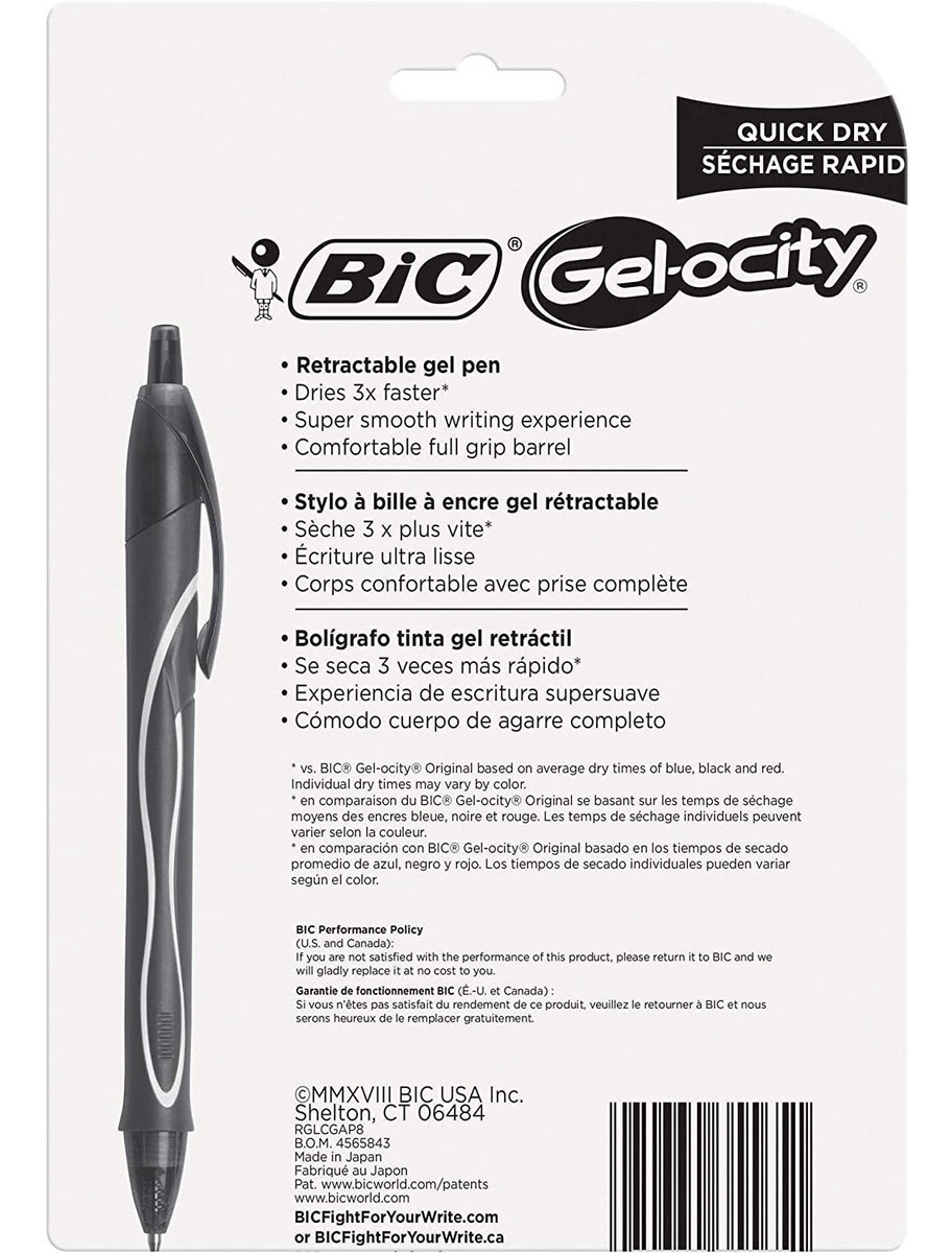 Tinta súper suave que ofrece una experiencia de escritura fluida, sin esfuerzo.; La tinta se seca hasta 3 veces más rápido y deja menos manchas. Contra la Bic gel-opacity original, basado en el promedio de secado del color azul, negro y rojo. Los tiempos de secado individuales pueden variar por color.; Escritura controlada y cómoda con agarre completo.; Crea líneas vívidas de punto de 0.02 pulgadas.; Disponible en una variedad de colores. Tamaño:8 Count | Color:Variados