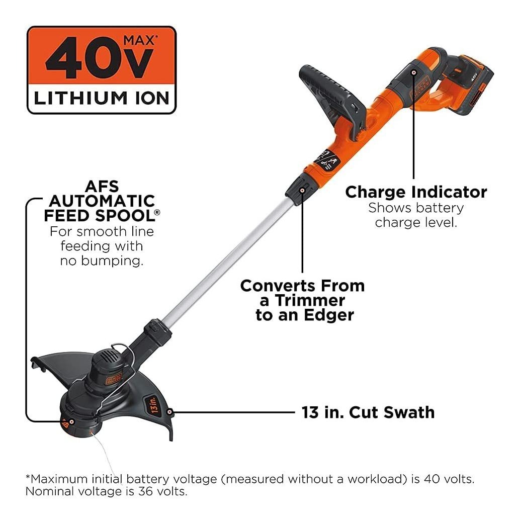 Especificaciones: Black Decker – Bordeadora De Césped A Cuerda, 40 V, Máx.
