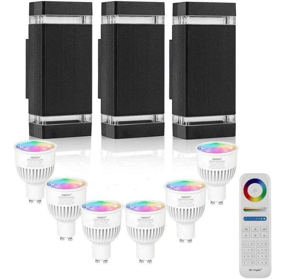 Bling mi.light solo la más alta calidad leds de marca en cada producto que creamos. Esta luz de pared arriba y abajo viene con 2 piezas GU10 de 6 W, 1200 lúmenes, configuración de control remoto RGB-CCT se puede utilizar tanto en exteriores como en interiores.