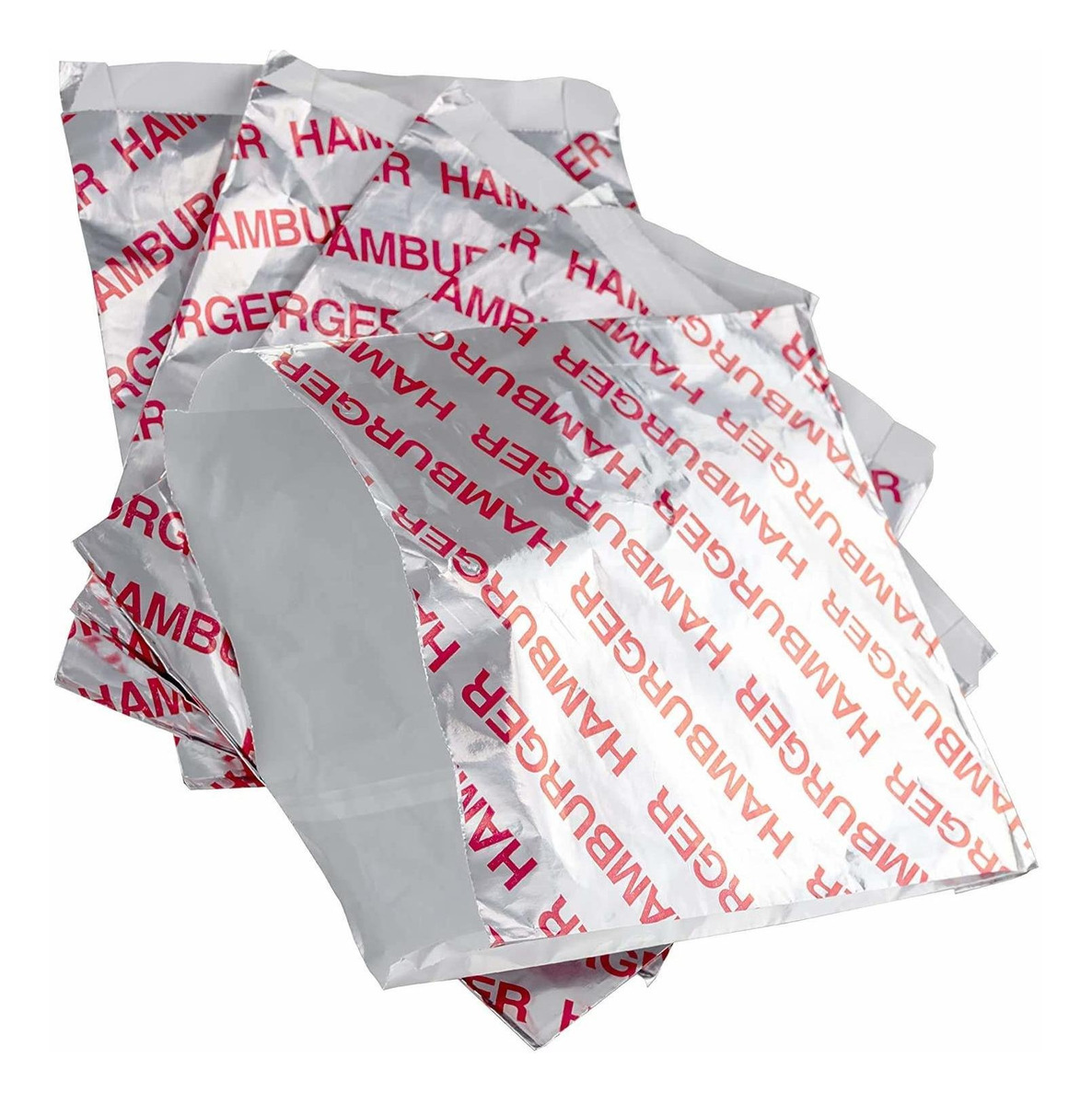 Nuestras envolturas de papel de aluminio para hamburguesas no solo mantienen tus hamburguesas calientes, sino que también bloquean la humedad para evitar que tus bollos se vuelvan duros y rancios.