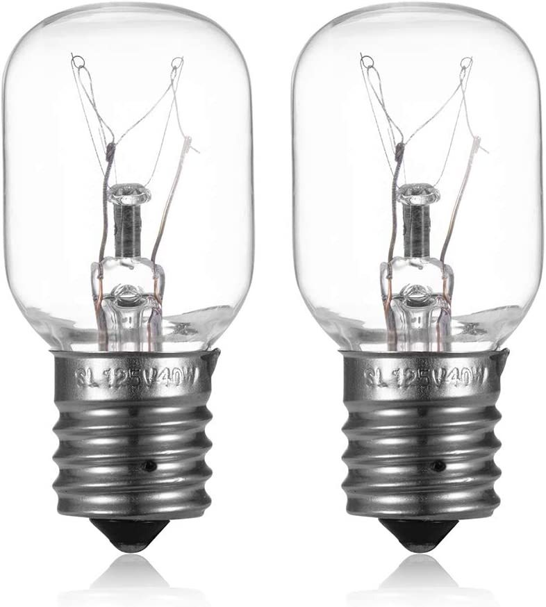Esta bombilla de microondas es regulable para ajustes de luz alta y baja; Base E17 125 V 40 W, luz amarilla cálida, 2.2 in de largo, 0.9 in de ancho. Repuesto para la pieza # 8206232A; Fácil de instalar y funciona bien. Garantiza un rendimiento duradero y eficaz.; Compatible con microondas Whirlpool GE Kenmore LG sobre la gama; El paquete incluye 2 bombillas para microondas. Están hechos de material duradero de alta calidad. Todos nuestros productos estan en inglés SKU 91221010509