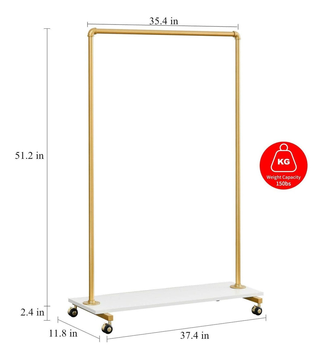 CLOTHING RACKStylish design meets functionality – either at home or at your store. Accessorize it as you wish with either high heels or purses and handbags, or use the precious wood storage for books and fashion magazines.; EXTRA STORAGE MOBILE RACKThe shelves for shoes or boxes to create extra storage ,and four 360wheels in bottom for easy moving.Dimension36/47/59L 11.8W 51/59H; HIGH QUALITYOur planks are selected from natural forests and then carefully machined to withstand moisture, corrosion and abrasion.; DURABLE STURDYIt adopts environmentally friendly spray paint, is scratch-resistant, has a smooth hand and is not easy to fade. Bold bracket, the bearing capacity is more strengthened, not easy to deform. Composed of iron frame, equipped with adjustable non-slip feet to protect the floor from scratches.; EASY ASSEMBLEDesigned with removable built-in fittings, just need 5 minutes, so it is easy for you to assemble and disassembled. simple structure and classic design make it convenient for you to install. it is easy to clean and maintain, you can use a wet cloth to wash it directly. Todos nuestros productos estan en inglés SKU 6102028970