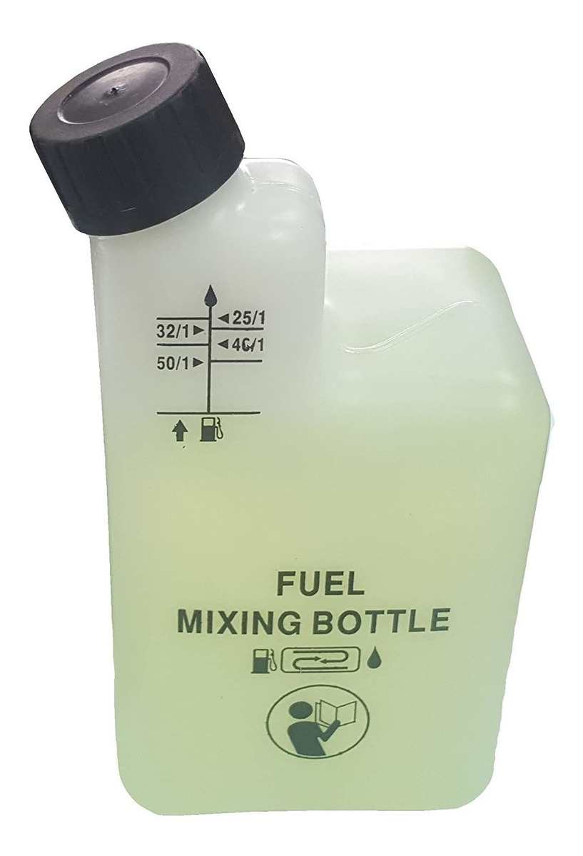 Compatible con las marcas: Stihl, Husqvarna, Dolmar/Makita, Tecumseh y más.; Para mezclar aceite y combustible en relación correcta para cualquier maquinaria de jardín motorizada de 2 tiempos.; Botella de 1 litro (tapa blanca) para mezcla de 2 tiempos 50:1, 40:1, 32:1, 25:1.; Equipo esencial para garantizar la correcta mezcla de combustible.; Utilizado para: motosierras, sopladores, desbrozadoras, cortasetos y cortasetos Botella de mezcla de combustible