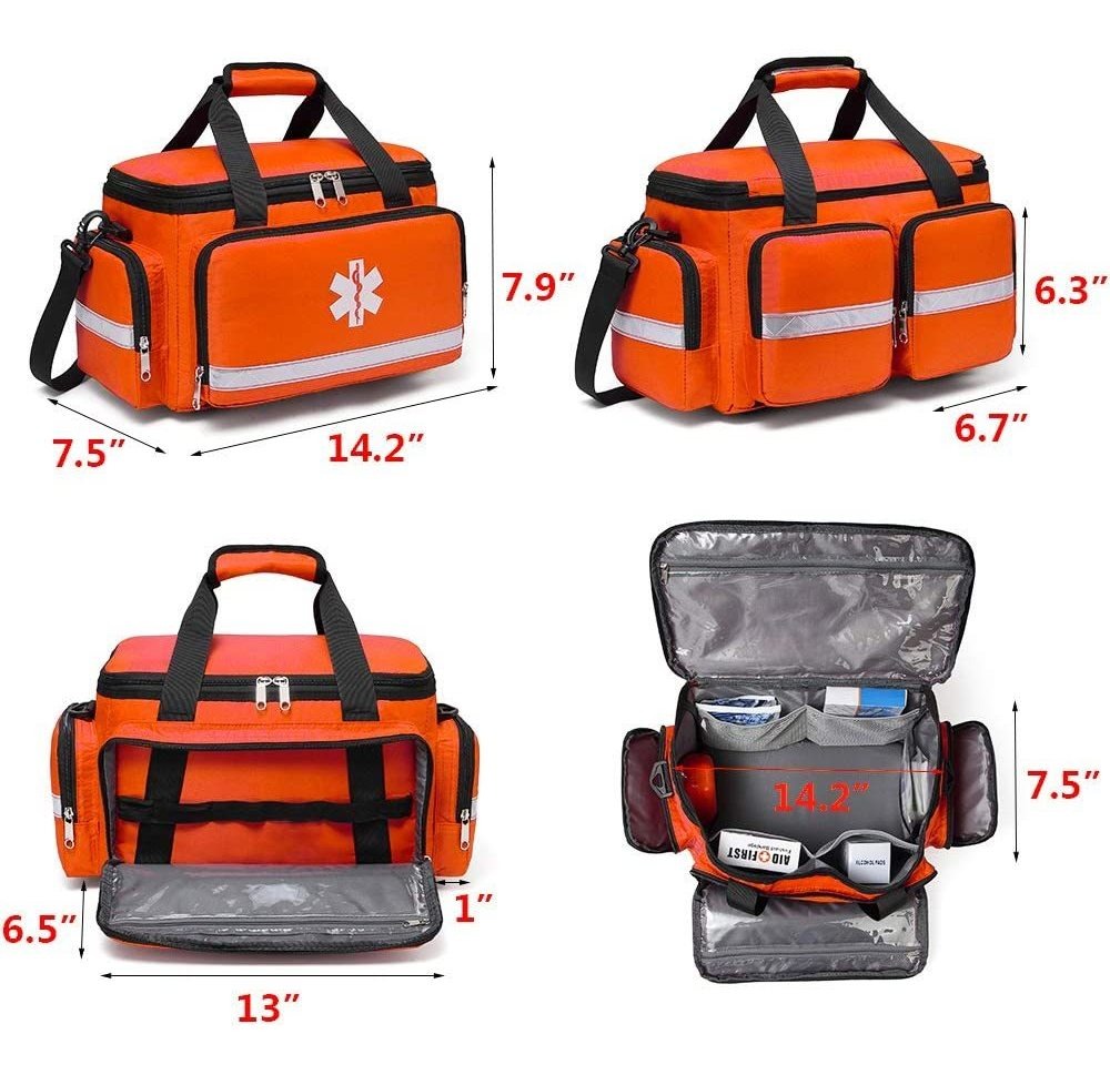 Sólo una bolsa vacía, sin incluir el contenido .; La alta calidad de espesor, de material resistente a la abrasión que no está rota fácilmente, perfora, o rayado durante las actividades al aire libre. Correas de hombro acolchadas y cómodas asas, dos métodos contables para satisfacer sus necesidades .; Rojo altamente reconocible y marcas a prueba de agua que sea fácil encontrar la bolsa cuando está en necesidad urgente de herramientas. La bolsa protege herramientas en húmedo y entornos duros .; regalos ideales que puede planear para la familia, caminatas, campamentos, viajes, coche, equipo de fútbol, explorador, viajes con mochila donde quiera que va a ir .; De gran capacidad y diseños de bolsillo multi-bolsillo-8 organizados y 2 diseños a gran bolsillo transparentes le permiten encontrar fácilmente los artículos que necesita. La gran bolsillo interior tiene 2 bandas elásticas en cada lado, que puede contener artículos grandes. Gran capacidad para almacenar artículos. Color naranja