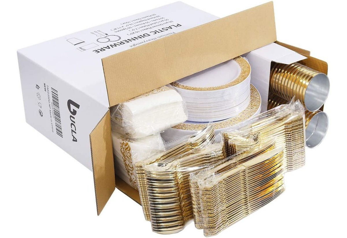 Materiales crudos Seguros: utilizació plástico 100% de grado alimenticio y Garantiza Completamente inofensivo. Los platos de plástico dorado, los Cubiertos y Las servilletas desechables ideales Son Para el de uso diario y Ayudan a proporcionar Una Vida Saludable .; Párrafo 50 invitados: INCLUYE 50 platos desechables dorados, 50 Platos de postre, 50 Tenedores, 50 Cuchillos, 50 Cucharas, 50 Vasos de plastico y 50 servilletas Desechables. Vajilla de plástico dorado de Alta Calidad y rentable. Muy párrafo recomendable ti .; Diseño de lujo: los Platos de Oro de encaje decorativos hijo LUJOSOS Y ESTÁN Diseñados para Ocasiones Elegantes. También los Cubiertos de plástico dorado ESTÁN Diseñados ONU de la estafa de mango dorado Clásico Que les da UN TOQUE elegante .; Uso para Todo tipo de eventos: Platos de plástico de lujo para boda facilmente dan UN TOQUE Sofisticado una ANU Variedad de Diferentes eventos. Los Cubiertos de Oro de Alta Calidad hijo también adecuados Muy Para Tu cumpleaños, Acción de Gracias, bebe, fiesta de Año Nuevo o boda, y Mucho Más. Sin tíos en comprarlos Si Es Necesario .; Gran paquete: 350 Platos de plástico dorado con Cubiertos de gran valor, el gran paquete Da la impresión de la ONU producto Más caro. Increíblemente es Asequible y Duradero. Vajilla dorada: Color