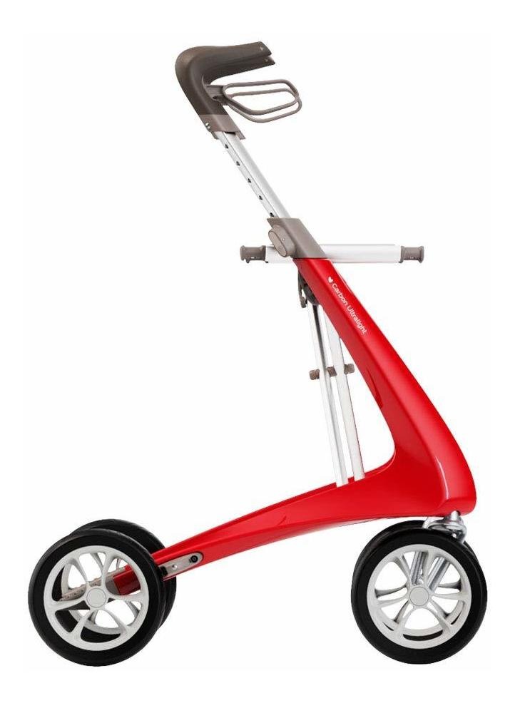 With only 10.6lbs the CARBON ULTRALIGHT ROLLATOR is a super lightweight rollator. It is recognized for its innovative and unique design by the world-renowned RED DOT design award, and simply a walker that keeps you going – in style! With the lightweight materials, easy folding, and sleek lines, it will easily fit in any car, train, boat or airplane, so you can keep discovering the world around you. The wheels are soft, handles turned for more upright posture, and the brake cables have been hidden inside the frame for a more streamlined look. The rollator comes fully assembled and the small organizer bag with shoulder strap is included.