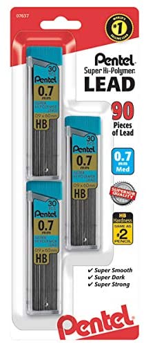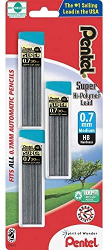 Specification: Cables Pentel® Super Hi-Polymer®, 0,7 mm, mediano, HB, 30 cables por tubo, paquete de 3 tubos