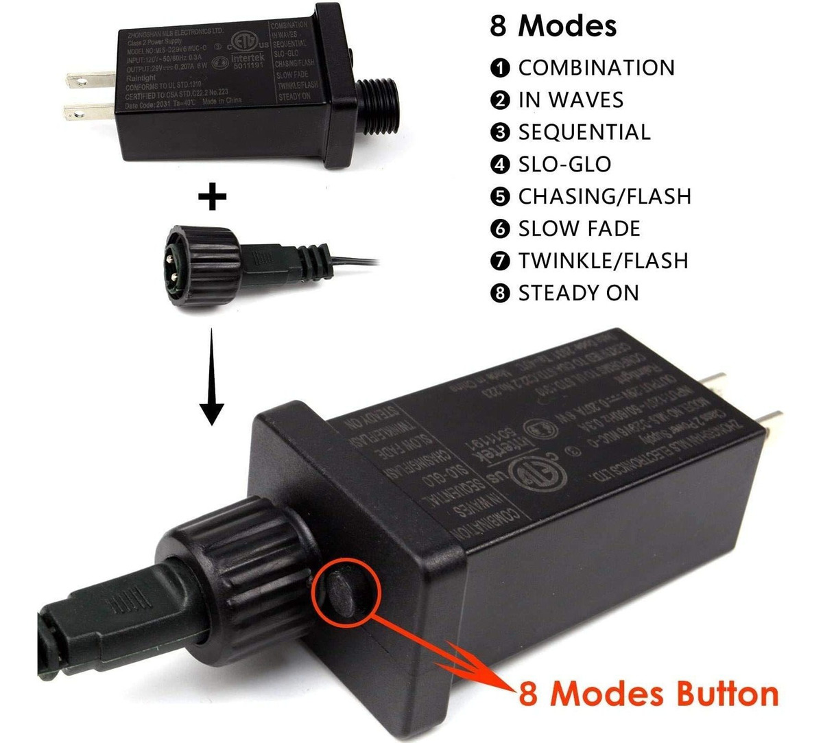 2020 Nueva ACTUALIZACIÓN !! !: Super Brillante estafadores Nuevas Bombillas LED Mejoradas. Este cable de 200 luces de color de LED blanco cálido y verde Tiene 8 Modos de Iluminación para satisfacer su diversa Decoración de efecto. La Longitud es el total de 82 empanadas, de los Cuales 66 empanadas con luces .; Más seguro y extensible: enchufe de bajo Voltaje de 29 V con Certificación UL, Más Seguro que Aquellos pecado APROBACION UL, SE Puede extensor Hasta ONU Máximo de 5 cadenas de luz (Máximo 1000 LED) .; Ampliamente utilizado: Perfecto para fiestas de Navidad, bodas, Día de Acción de Gracias, jardín, Decoración de dormitorio, interior y exterior. Ampliamente utilizado para decorar el árbol de Navidad .; 8 Modos de Iluminación: Estas luces parpadeantes Tienen 8 Modos para adaptarse a Diferentes Ocasiones, estados de ánimo, Sentimientos, Vacaciones, festivales, Aniversarios, etc. (Combinación, en ondas, secuencial, brillo lento, persecución / flash, desvanecimiento lento, parpadeo / flash, Encendido Constante). Fit los Modos de Iluminación pulsando El Botón redondo del adaptador .; Luces de hadas impermeables al aire libre: Perfecto para patio, jardín, patio, porche, techo, Valla, restaurante, hotel, edificio comercial, Centro Comercial, etc. Nota: Si Por any reason No Estás satisfecho, Nuestro equipo de servicio al cliente te ayudará un Devolver o reembolsar. Todos nuestros productos estan en inglés SKU 7112000346
