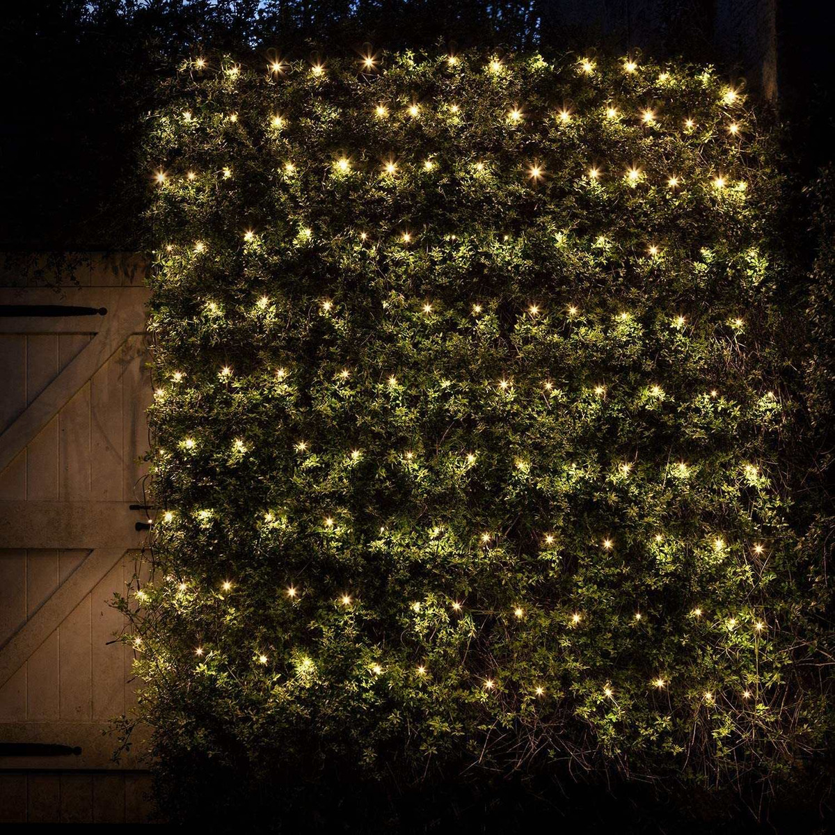 Luces de red solares: esta malla solar es muy buena opción para el jardín al aire libre, patio, ventana, vallas, arbusto, árbol de Navidad, decoración de pared y no necesita comprar salida adicional, solo necesita luz, en cualquier lugar se puede utilizar; Cable verde oscuro, 9.8 pies x 6.6 pies, 200 luces LED 9.8 pies de largo x 6.6 pies de ancho, 200 luces LED, la red de luces puede cubrir una gran área que puede crear ambientes hermosos y cálidos para tu vida. El cable verde oscuro se puede ocultar fácilmente por la noche, más encantador; Resistente al agua y largo tiempo de trabajo Panel solar de alta calidad y más grande construido en batería de 1200 mAh puede iluminar hasta 8 horas por la noche si el panel absorbe suficiente sol durante el día. Tanto la cadena de luces como el panel solar son resistentes al agua IP65. No te preocupes por usarlos bajo la lluvia.; 8 modos de iluminación: hermosos modos de iluminación incluyendo combinación, luciérnagas parpadeantes, ondas, decoloración, persecución/parpadeo, desvanecimiento lentamente, parpadeo/intermitente y constante.; Efectos de decoración especiales: vive, ama, crea, añade un ambiente cálido y encantador para tu hogar, patio, césped, jardín, árbol, vid, porche, ventana de dormitorio, balcón, tiendas, bares, cafetería, restaurante, balcón, pasarelas, toldo de pérgola y cualquier lugar que desees. Color:Blanco Warm