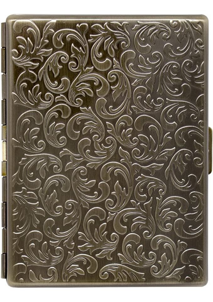 Caja de Cigarrillos metálica chapada en plomizo con temática de la vendimia Que es resistente, resistente a la corrosión y te durará años. Mide 3,0 x 3,5 en, this funda PUEDE acomodar 9 Cigarrillos de Tamaño normales o de 100 Segundos .; Una prueba de aplastamientos, this Caja de Cigarrillos Cuenta con clips dobles para Asegurar tus cigarrillos y Otros Accesorios para fumar. Bisagras extrarresistentes y Un Botón de Liberación en la parte frontal Asegura que tu contenido permanezca seguro y Nunca de aplaste .; Diseños estafadores vendimia Grabados en Ambos Lados, this funda SE Puede GUARDAR comodamente en tu bolsillo o bolso. Tarjetas de Crédito párr ideales, Licencia de Conducir, Tarjetas de identificación, dinero En Efectivo Y Todo tipo de accesorios para fumar .; Buscas algo más OFRECEMOS Nuestras fundas en Varios TAMAÑOS: from Una caja de Cigarrillos de Tamaño normal Que se Adapta un paquete completo de las Naciones Unidas ONU un paquete pequeño Ligeramente Más de 16 unidades, de las Naciones Unidas Tamaño compacto de Medio paquete y Un Tamaño ultracompacto. Disponemos de fundas para Cigarrillos de Tamaño normal, Tamaño King, 100 y 120 y en acabados metálicos y de cuero. No Quieres clips estafadores lidiar También vendemos las cajas de Cigarrillos con bandas elasticas. Por favor, Consulte Nuestros Otros Listados de Cajas de Cigarrillos párr Mas opciones. Mantén tus Cigarrillos Seguros y Protegidos manteniéndolos en Nuestras Elegantes y duraderas cajas Metálicas. Hecho para adaptarse a tus Cigarrillos de Tamaño o 100s normales, this funda Es Lo Suficientemente delgada para caber Como en tu bolsillo o bolso.