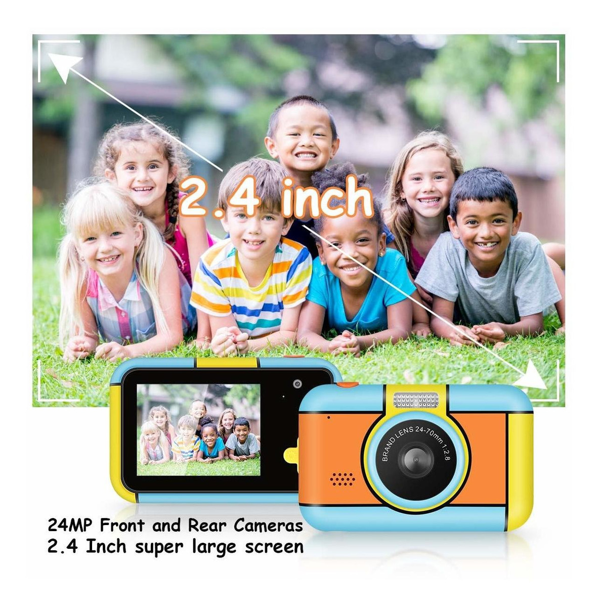 Cámara niños – kid MagicFun regalos de cámaras digitales para Age 3 4 5 6 7 8 9 10 Años de Edad Niño Niña, 24MP de 2.4 pulgadas LCD de gran tamaño de pantalla azul de vídeo videocámara, cámara recargable selfie USB con tarjeta SD de 32 GB ¿24 millones de píxeles y 1080p HD de vídeo¿ Esta cámara de los niños tiene pantalla azul gran pantalla LCD de 2,4 pulgadas, 24 millones de píxeles de la lente HD delantero y el trasero, 4x zoom digital, 7 píxeles para elegir, vídeo 1920x1080P – es la mejor cámara niños videocámara y cámara de juguete para los delicados ojos de los niños, mantener a los niños participan y traer una experiencia feliz para los niños / niñas .; ¿Multifunción y 32 GB de alta capacidad¿ Sobre la base de los que toma las fotos, grabar vídeos, de un solo clic de retorno, agregó 6 escena de selección, 30 adhesivos para fotos, enfoque automático, disparador automático y el disparo de lapso de tiempo, el reconocimiento de caras, captura de sonrisa , modo de disparo continuo. Las fotos pueden ser magnificados 1-4 veces la capacidad de almacenamiento, ampliable hasta 32 GB (32G tarjeta micro SD incluida, puede almacenar más de 2300 fotos) – La cámara de los niños no sólo una cámara de juguete sino una verdadera cámara para la creatividad y la manía de Arouse niño .; ¿2,4 pulgadas gran pantalla LCD de pantalla azul y materiales seguros¿ 4. cámara digital de los niños adopta silicona no tóxica respetuosa del medio ambiente y los materiales a prueba de golpes. Es RoHS, EN-71 y la certificación CE para garantizar la calidad segura y confiable. Y 2,4 pulgadas de pantalla LCD de gran tamaño azul dar a los niños un mejor efecto visual para descubrir sus mundos de colores .; ¿Cámara de alto rendimiento de configuración Niño¿ La batería incorporada 610mAH tiempo de carga 1-2 horas, 20 días de tiempo de espera largos, efecto de flash de colores (cámara intermitente y luz constante), cabeza de carga USB. La función de apagado automático puede ser seleccionado en 1 minuto, 3 minutos, y 5 minutos. El paquete incluye: 1 * Cámara niños, 1 cable USB *, 1 * tarjeta de memoria de 32 GB, 1 * Cuerda de seguridad, Manual del usuario 1 *, 1 * pegatinas de dibujos animados; ¿Bellas regalos para los niños¿ esta cámara digital niños sólo pesa 0.66lb, más adecuado para las pequeñas manos del niño para llevar a todas partes, y esto es un dispositivo multimedia y la plataforma de juego que permite a los niños pequeños a hacer más ejercicio de imaginación y experimentar la diversión de la naturaleza. Conveniente para los cumpleaños, fiestas, Navidad y otras ocasiones especiales. Todos nuestros productos estan en inglés SKU 8111902868
