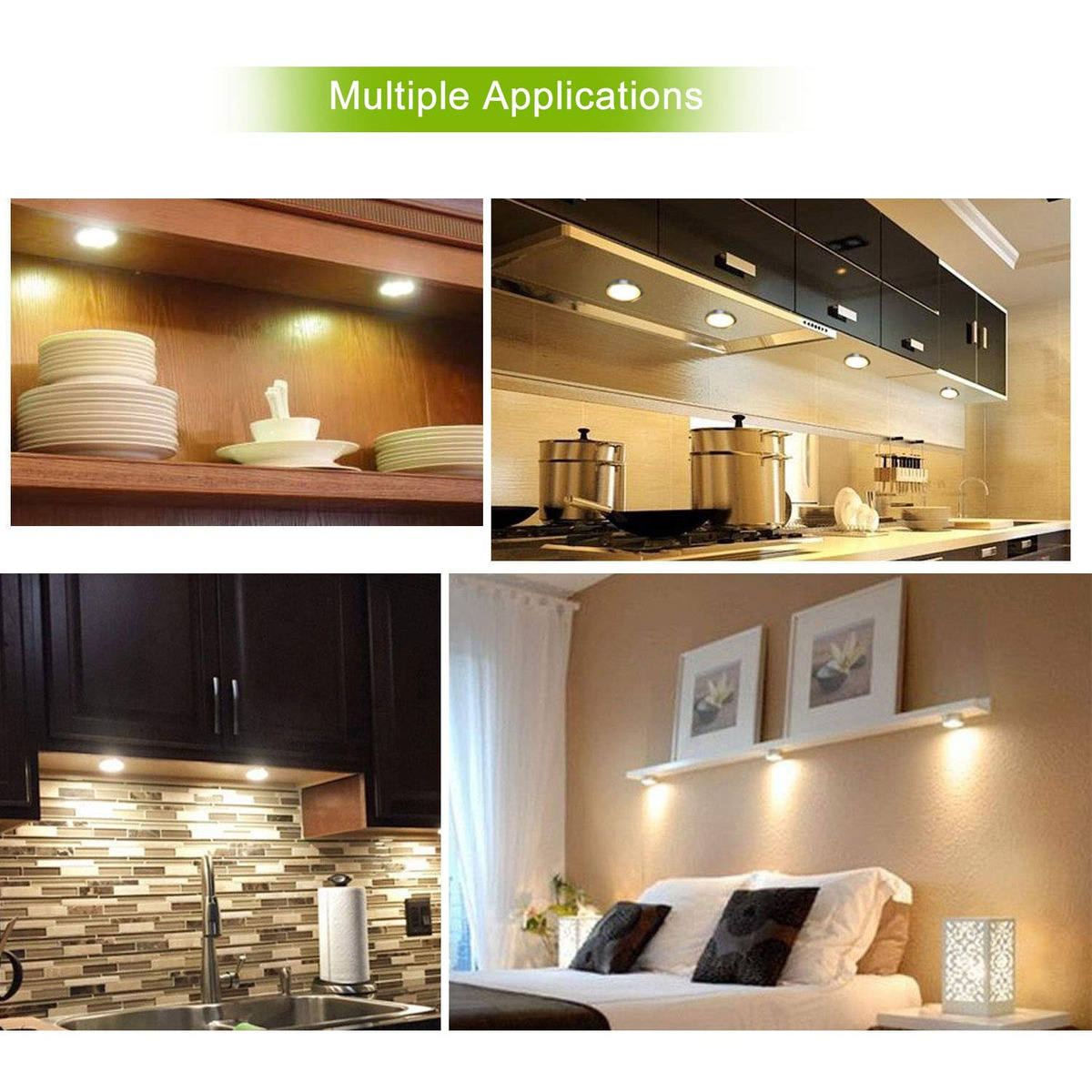 6 luces llevadas disco con RGB cambio de colores, regulable de control remoto RF inalámbrico .; El LED bajo accesorios del equipo para la iluminación del gabinete incluyó: adaptador, divisor, cables de extensión, cintas adhesivas, muy fácil de instalar y protegerá sus muebles .; AC100 / 240V al adaptador de 12V CC asegura que los menores de luces del gabinete establecidos son muy seguros para tocar .; El gabinete llevó la luz del disco están hechas de aleación de aluminio, no de plástico, que proporciona muy buena disipación de calor y vida útil más larga .; Tenga en cuenta: el color blanco luces de Puck es una mezcla de luz roja, azul y verde, no es puro blanco, amarillo, rosa colors.There es un poco de diferencia de color, por favor, comprenda. Multi-Función de color RGB que cambia la iluminación del gabinete debajo del kit con 17 teclas de control remoto inalámbrico RF regulable gabinete encabezado kit de luces puck para la iluminación de muebles de cocina estado de ánimo.