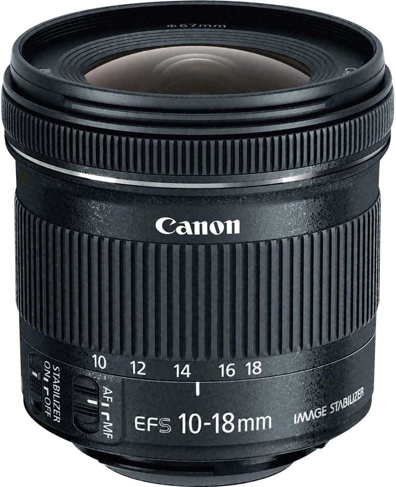 Canon ultra ancho EF-S Monte lente 0,394 a 0,709 en – 0,630 a 1,134 en (Equivalente a 1.378 pulg); Rango de Apertura: f / 4.5 hasta 5.6 a f / 22-29 – Un Elemento UD y Un Elemento Asférico .; Recubrimiento de lente Mejorado: estabilizador de imagen óptica .; STM – Motor Paso a Paso para AF silencioso, Sistema de zoom óptico de cuatro Grupos; Anulación de Enfoque manual de un Tiempo completo – Apertura circular de siete aspas Lente Canon EF-S 0,394-0,709 en f / 4.5 a 5.6 ES STM paquete de accesorios de lujo