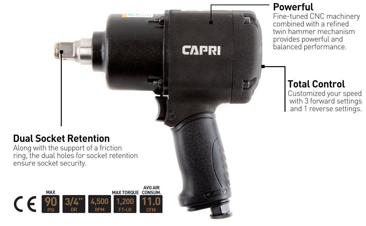 Especificaciones: Capri 32002 Herramientas De Aire Llave De Impacto, 3/4 Pulga