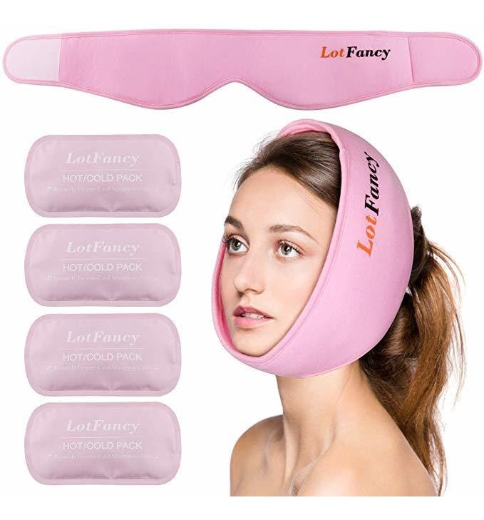 EFICAZ ALIVIO DEL DOLOR: contorneada envoltura de hielo ofrece terapia de frío instantáneo / calor para la mandíbula, la barbilla, la cara y la cabeza áreas, grande para el dolor de la articulación temporomandibular, DTM, dolor en los senos, las muelas del juicio, cirugía oral, inyecciones cosméticas, los tratamientos con láser, dermoabrasión, lavado de cara procedimientos, los implantes de dientes, migrañas y más; MANOS LIBRES DISEÑO: incorporado en los bolsillos acurrucan dos / packs y asegura ellos junto a sus áreas de dolor en caliente frío; y la envoltura de diseño de gancho y bucle es conveniente que se envuelve alrededor de la cabeza, las manos libres para hacer cualquier cosa, como de costumbre; De un tamaño más: la envoltura ajustable puede añadir compresión, si es necesario, se puede ajustar desde 27 pulgadas a 30 pulgadas, adecuados para los adolescentes, las mujeres y los hombres; Four Soft bolsas de hielo: 4 paquete de gel flexible proporciona terapia caliente o fría óptima para las lesiones y el alivio del dolor, 2 paquetes de gel a la vez y los otros 2 compresas frías pueden utilizarse en alternancia; SAFE y reutilizable: los paquetes de hielo gel, hechas de vinilo de alta calidad, es lacrimógeno y split-resistente, y fuertes forro de nylon evita las fugas para extensa reutilización; lleno de no tóxico, respetuoso del medio ambiente CMC y glicerina, libre de látex, seguro para todas las edades y la piel sensible Todos nuestros productos estan en inglés SKU 5022002950