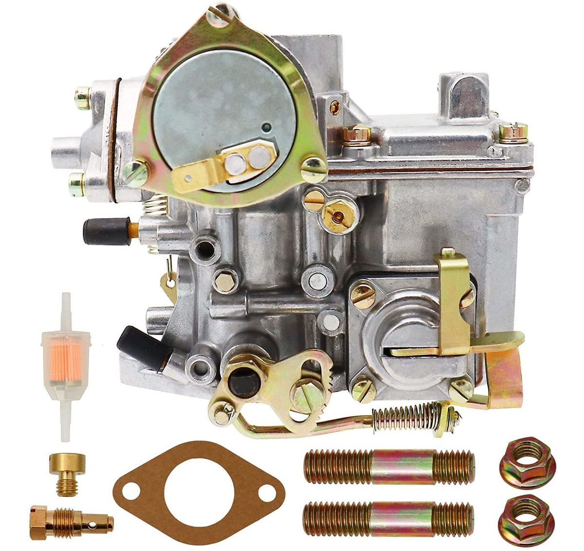Calidad prémium: alta calidad 34 PICT-3, nuestros carburadores son fiables y duraderos, ayudando a tu coche a funcionar al máximo rendimiento, 100% probado antes del envío, elección perfecta para reemplazar tu montaje defectuoso.; Compatible con: el carburador se adapta a cualquier motor de 1600 cc VW Air Cooled Type 1, tales como: 1971-1979 VW Super Beetle, 1971-1979 VW Beetle, 1973-1974 VW Thing, 1971-1974 VW Karmann Ghia, 1969-1972 VW Transvers. Porter, 196 7-1973 VW Squareback.; Número de pieza original: 98-1289-B, 113129031K; Aviso: solo para motor de doble puerto, no para motor de un solo puerto.; Paquete: 1 carburador 34 PICT-3 para VW, 1 junta de montaje, 2 tornillos de montaje. Ver imágenes para más detalles. Compatible con: