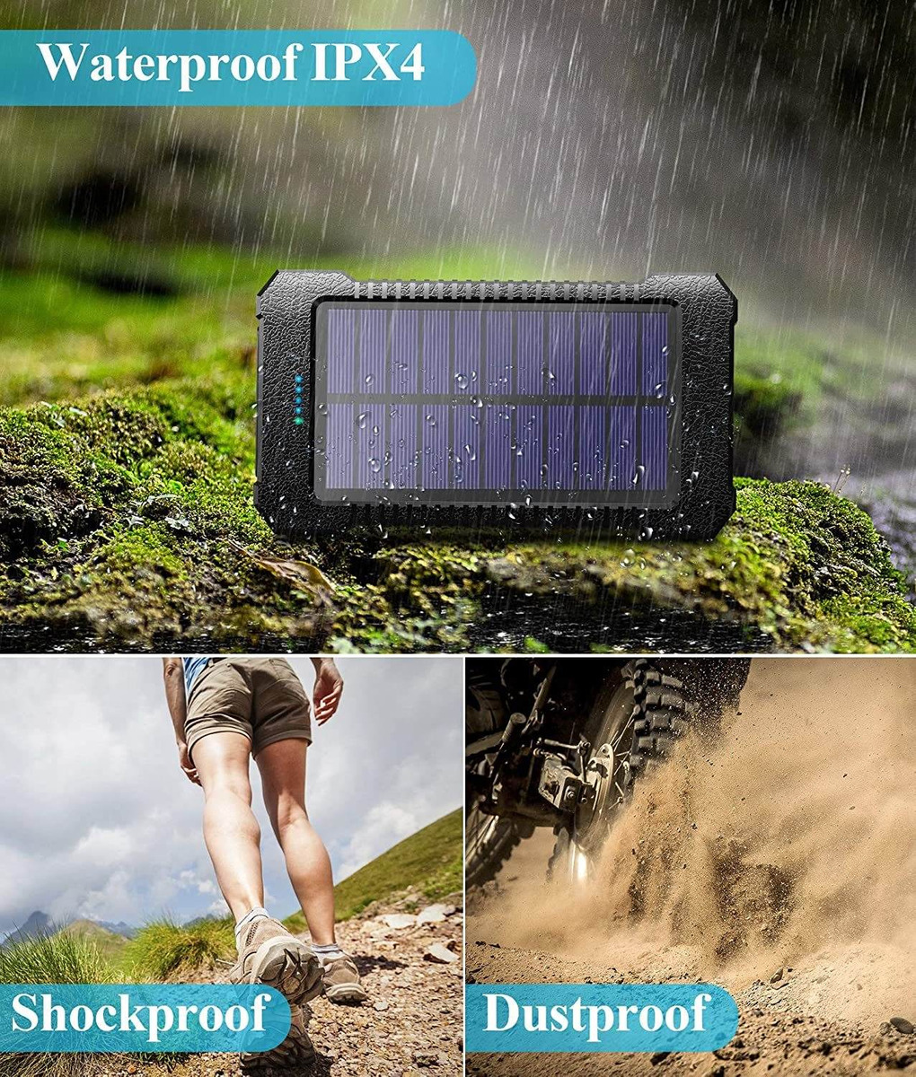 Cargador de batería solar de alta capacidad de 26800 mAh: el cargador solar integrado con batería externa de gran capacidad de 26800 mAh. Alimentado por baterías de polímero de litio, más duradero y más duradero. Es una mejor opción para viajes de camping u otras actividades al aire libre.; Carga solar y carga USB: el banco de energía solar está equipado con dos puertos de carga de salida USB y carga rápida (salida USB 1: 5 V/2,1 A, salida USB 2: 5 V/1 A), 2 dispositivos digitales se pueden cargar simultáneamente. También contiene una entrada micro USB (5 V/2,1 A). La carga solar solo se puede utilizar como función de emergencia. Está sujeta a la intensidad de la luz solar y la tasa de conversión de panel. Tarda mucho tiempo en llenarse. carga con este banco de energía solar.; Luz de camping: el cargador de batería solar es muy fácil de operar. Haz doble clic en el botón de encendido, la luz LED se encenderá. Haz clic en el botón una vez más para entrar en la luz tenue, una vez más entra en estado de emergencia. Por lo que este cargador portátil es perfecto para acampar, senderismo y otras actividades al aire libre, ilumina tu vida al aire libre.; Soporte de ventosa para coche: el cargador solar está equipado con un soporte único de ventosa para coche, el panel solar se fija a la ventana del coche mirando al sol, lo que puede maximizar la eficiencia de carga solar, y la función de absorción hace que el banco de energía sea más estable y seguro. El soporte está directamente abrochado en el banco de energía, que es conveniente y rápido de desmontar y montar.; Material ABS y resistente al agua: el banco de energía solar portátil está hecho de material ABS respetuoso con el medio ambiente, elegante y decente, a prueba de salpicaduras, a prueba de polvo, a prueba de golpes. Todos nuestros productos estan en inglés SKU 91221082117