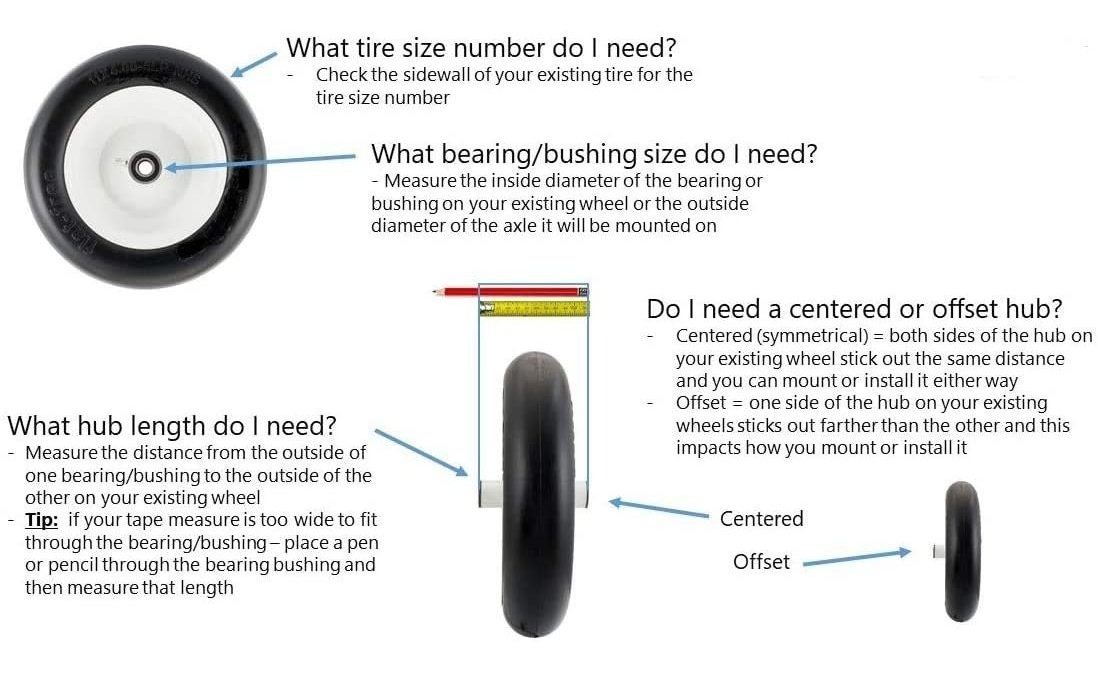 Descripción general: dos (2) neumáticos de poliuretano sólido de grado contratista con patrón de cruz de 4.80/4.00-8 pulgadas (universal de 16 pulgadas) y montaje de llantas de acero para carretilla de grado residencial y de grado contratista que se fabrica en 2021; Dimensiones: diámetro del neumático: 15.8 pulgadas; ancho de la banda de rodadura: 4.8 pulgadas; diámetro de la llanta: 3.1 in; longitud de la base del cubo centrado: 3.25 pulgadas (se puede extender hasta 6 pulgadas); orificio de 3/4 instalado (juegos adicionales de rodamientos de 5/8 pulgadas adjuntos para un posible reemplazo de bricolaje).; Características: sin mantenimiento, sólido sin plano, resistente a pinchazos, rodamiento de 3/4 pulgadas instalado y con ajuste de grasa en ángulo: no es necesario comprobar la presión del aire, añadir aire o fijar la perforación de los neumáticos. Ahorra tiempo y te hace relajarte en el cuidado de los neumáticos; No apto para uso en carretera. No apto para cortacésped o cualquier tipo de carritos de remolque. No apto para carga estática.; Nota: antes de realizar el pedido, comprueba las especificaciones actuales de tus neumáticos y ruedas, como el tamaño actual del neumático, la longitud del buje de la rueda y el diámetro interior del eje del eje, etc. (Ver cómo hacer en las imágenes) Todos nuestros productos estan en inglés SKU 4022207550