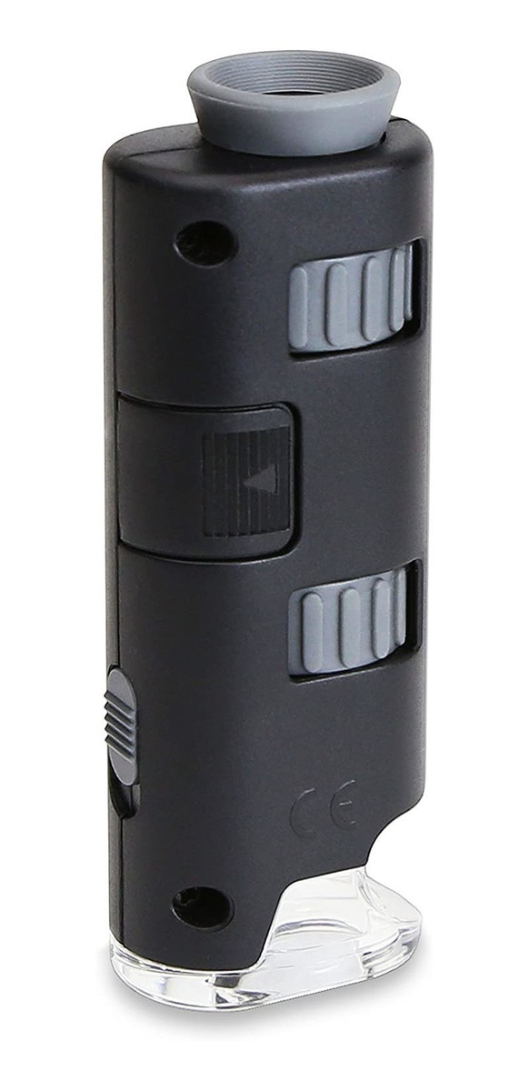 Portable LED iluminado microscopio de bolsillo; Se ejecuta en 3 SG3 la célula del botón pilas (opcional); Potencia y un zoom controles (60x-75x aumentos) para imágenes brillantes y claras; Tan ligero que puede llevar en cualquier lugar; Medidas 1,25 x 3,25 x 0,75 pulgadas (W x H x D) Ligero y portátil, el microscopio de bolsillo Carson MM-200 MicroMax es ideal para la ciencia en el lugar de marcha. MicroMAX ofrece una potente 60x a 75x rango de aumento, por lo que es fácil de examinar muestras de sangre, insectos, y todo lo que es digno de una mirada más cercana. El microscopio también incluye una luz LED incorporado que proporciona una imagen brillante y clara, junto con un ocular de goma para una cómoda visualización. Lo mejor de todo, el MicroMax encaja convenientemente en un bolsillo de la chaqueta, por lo que puede llevarlo dondequiera que vaya – ya sea un viaje de estudios de escuela o una visita a la casa de un amigo.