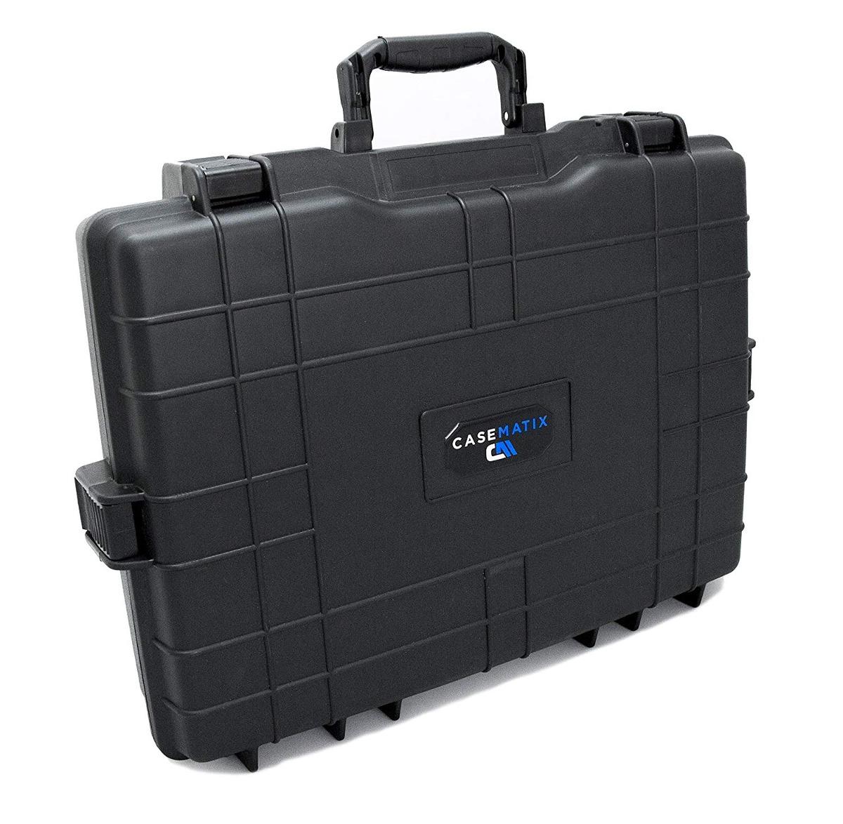 Este caso es ideal para viajar con su diseño de estilo maletín y una función de asa plegable. Dimensiones externas miden 21.0” x 16.0” x 4.0” y pesa 8.5 libras por lo que es fácil de llevar a su más valioso equipo de DJ a su lado. El diseño resistente al aplastamiento es perfecto para llevar a su equipo en los aviones, en el coche, estudio y más. Cuatro pestillos de trabajo pesado mantienen la funda bien cerrada.