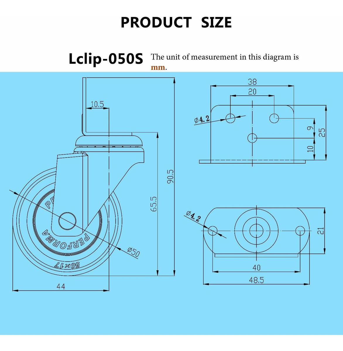 Especificaciones: Casoter 2 (50 Mm) En Forma De L Placa Giratoria Rueda, Roda
