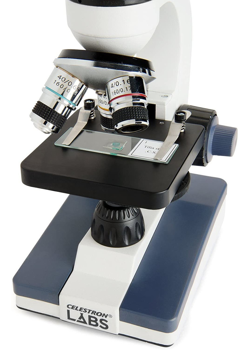 Microscopio Compuesto Listo para laboratorio con 1000x de potencia; 10 oculares y 25 oculares con Objetivos de 4x, 10x y 40x .; Ver especimenes un 40x, 100x, 250x, 400x, 1000x magnificación; Construcción Totalmente metálica .; coaxial Enfoque, grueso y fino .; Iluminación LED Integrada Para Una Fácil Visualizacion .; Incluye: Adaptador universal de CA de 3 pilas AA, 10 Diapositivas PREPARADAS. Los laboratorios Celestron CM1000C ofertas microscopio compuesto de la actualidad últimos avances a un precio económico, incluida la iluminación LED inferior que proporciona colores brillantes y naturales, sin embargo, se mantiene fría al tacto. Dos oculares incluidas 10x y 25x () y 3 lentes objetivos (4x, 10x y 40x) permiten aumentos de 40x, 100x, 250x, 400x y 1000x. Fuerte y estable gracias a su construcción totalmente metálica, este microscopio cuenta con coaxial, curso y enfoque fino garantizando visión fina detallada. Las 10 muestras preparadas incluidas garantizan descubrimientos emocionantes a cabo la derecha de la caja. El condensador sencilla con la rotación de la abertura del disco ajusta la iluminación inferior para visualización mejorada. Todas estas características hacen que el CM1000C una excelente herramienta para laboratorios, escuelas, uso en el campo y más. Todos nuestros productos estan en inglés SKU 12062121283