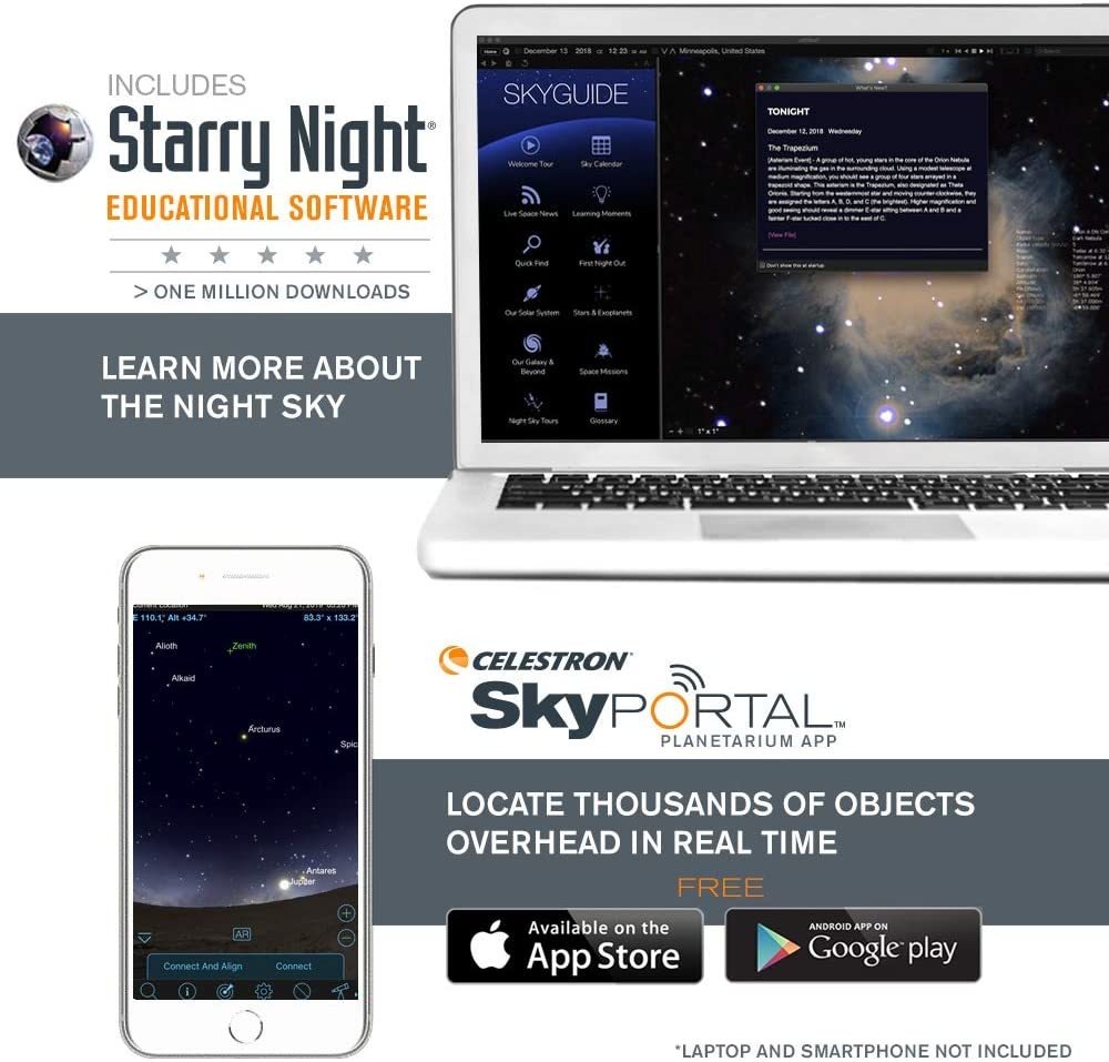 Óptica superiores: el telescopio Celestron de Viaje de 3.150 en Cuenta con óptica de vidrio de Alta Calidad, Totalmente revestida, la ONU potente lente objetivo m de 3.150 en, Marco de las Naciones Unidas ligero y Una mochila personalizada para llevarlo TODO. Su direction calidad es inigualable en su clase y contra la Competencia .; Potentes lentes Para Una Visualizacion de Cercano: Nuestro telescopio para principiantes de astronomía this Equipado con dos oculares de Alta Calidad (0.787 en y 0,394 in) Que proporcionan vistas de Objetos celestiales de baja y alta potencia Durante el día .; Objetivo Grande de 3.150 en: Nuestro telescopio refractor this Equipado con Una gran lente de 3.150 en el de Apertura Que proporciona vistas Mejoradas y Más brillantes en comparacion con el modelo de 2.756 en MIENTRAS ánade Muy poco peso Adicional. La configuration y El Uso del telescopio de Viaje es rapido y Fácil .; Incluye bolsa, trípode, Adaptador de Teléfono inteligente y el software: Este telescopio Celestron Se Puede Llevar un any Lugar en La Mochila de Viaje Incluida. También RECIBIRAS ONU trípode de altura completa y Un adaptador de teléfono inteligente para digiscopio. Los accesorios también INCLUYEN Una Descarga Gratuita de uno de los Programas de software de Astronomía Más valorados por el Consumidor .; Garantía inmejorable y Soporte al cliente: compra con confianza from La Marca de telescopio número 1 del Mundo, con sede en California desde 1960. Also RECIBIRAS Una Garantía de dos años y Acceso Ilimitado al Soporte Técnico de Nuestro Equipo de Expertos en Estados Unidos. El alcance de Celestron Travel 80 pesa sólo 3.3 libras y monta en cuestión de segundos sin necesidad de herramientas. Es fácil de usar para navegar por el cielo. Cuando su sesión de observación es más, todo lo empaca en la práctica mochila de viaje incluido. Su compra también le da derecho a una descarga gratuita de la PRIMA de la noche estrellada astronomía software de Celestron con información sobre 36.000 objetos celestes, mapas que se pueden imprimir, y más. Es la mejor manera de aprender sobre el cielo nocturno y planificar su próxima sesión de observación. Nuestro adaptador de teléfono inteligente es un accesorio imprescindible digiscoping que le permite conectar cualquier teléfono inteligente a cualquier ocular del telescopio con un diámetro exterior de 45 mm o menos. La ampliación adicional proporcionada por el ocular permite que el teléfono para capturar grandes imágenes de la Luna y los planetas. Celestron es la marca # 1 telescopio del mundo, con telescopios en observatorios de investigación de clase mundial e incluso a bordo de la Estación Espacial Internacional. Ahora su familia puede disfrutar de un telescopio Celestron de calidad en un paquete portátil y en un precio para adaptarse a su presupuesto. Todos nuestros productos estan en inglés SKU 12062111599