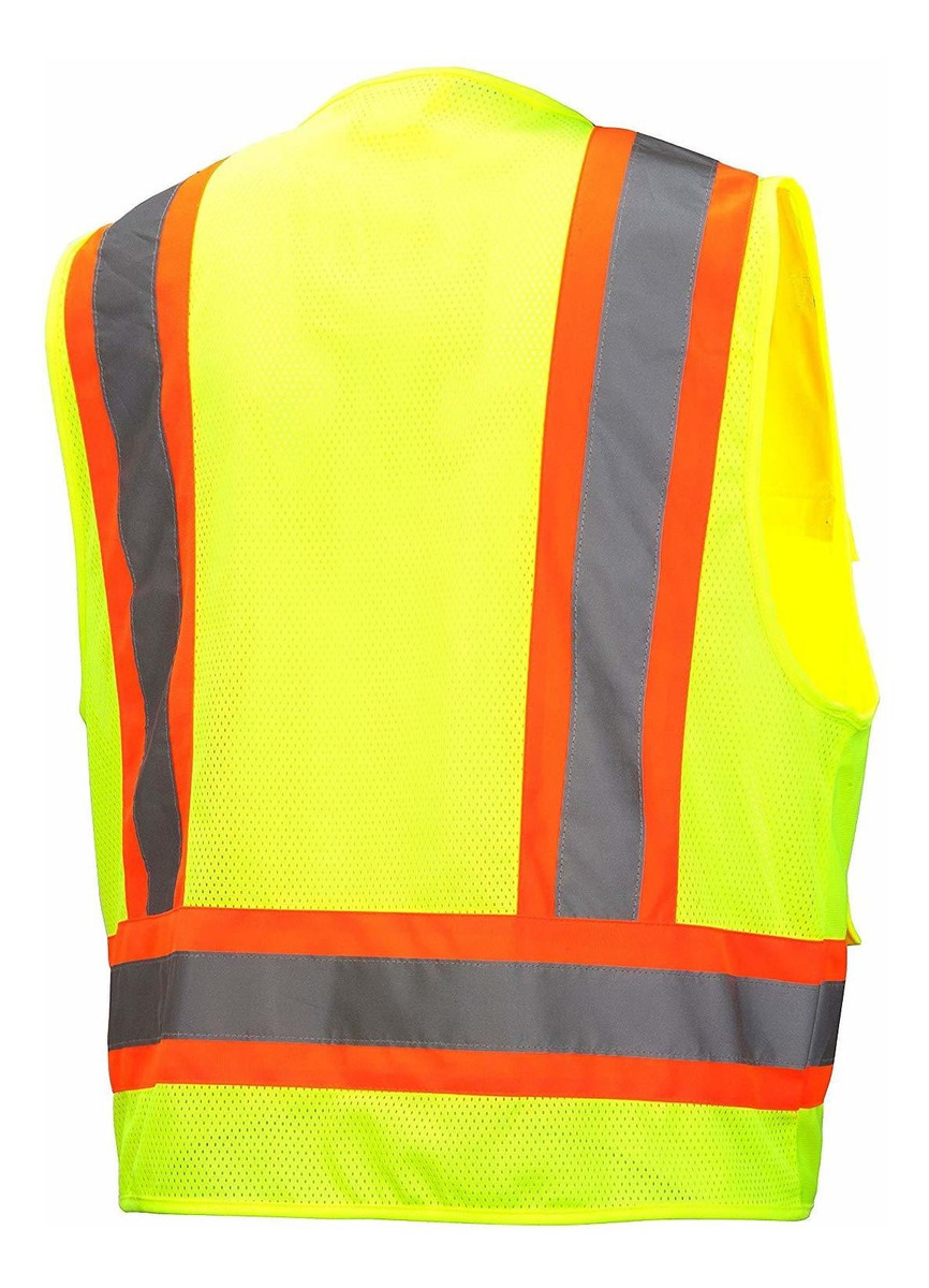 Cumple American Standard Nacional de Alta Visibilidad Ropa de seguridad: ANSI / ISEA 107 – 2010 / Clase 2 Nivel 7; 7 bucles de micrófono titular y 8 bolsillos (5 exterior, 3 en el interior); Hola Vis ligero frente sólido de poliéster y la malla de vuelta materia; Cierre de cremallera frontal; Cumple ANSI 2 pulgadas de material reflectante de plata con contraste de ajuste del color; Cumple American Standard Nacional de Alta Visibilidad Ropa de seguridad: ANSI / ISEA 107 – 2010 / Clase 2 Nivel 2; 2 bucles de micrófono titular y 8 bolsillos (5 exterior, 3 en el interior); Hola Vis ligero frente sólido de poliéster y malla de nuevo material; Cierre de cremallera frontal; Cumple ANSI 2 pulgadas de material reflectante de plata con contraste de color de acabado Tamaño: 5X-Grande | Color: Hi-Vis cal