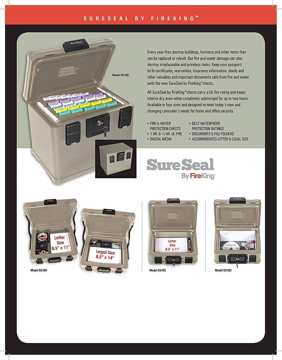 Diseñado para satisfacer las necesidades de seguridad de los consumidores de hoy.; Protege CD/DVD, flash drives, discos duros portátiles y otros objetos de valor de fuego y agua daño.; Sostiene # 10 sobres y documentos plegado.; Doble cierre de compresión y asa.; Resistente al agua para dos horas. Todos nuestros productos estan en inglés SKU 91221009952