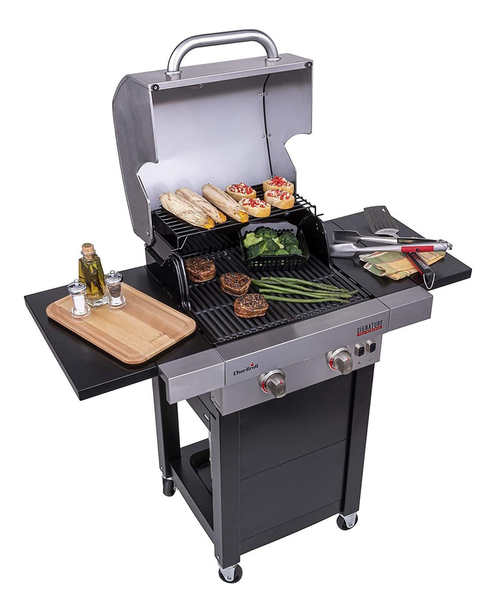 La parrilla de gas de 2 quemadores Char-Broil Signature Series evita los brotes, ofrece incluso calor y cocina comida más jugosa en un tamaño que ahorra espacio para un rendimiento máximo y versatilidad de cocción. Es fácil de montar y equipado con características premium como el encendido electrónico seguro para hacer que tus cookouts sean un éxito cada vez. Con un diseño elegante, luces LED integradas, estantes laterales plegables y 325 cuadrados de espacio de cocción primaria, esta parrilla se ve tan bien como cocina. También cuenta con un indicador de tanque integrado para monitorear el nivel de combustible y la capacidad de combustible dual para que pueda convertirse fácilmente de propano líquido a gas natural (el kit de conversión se vende por separado). Dimensiones montadas: 46.8 pulgadas de ancho x 22.5 pulgadas de profundidad x 47.2 pulgadas de alto. Pesa 89.5 libras. Todos nuestros productos estan en inglés SKU 15092122293