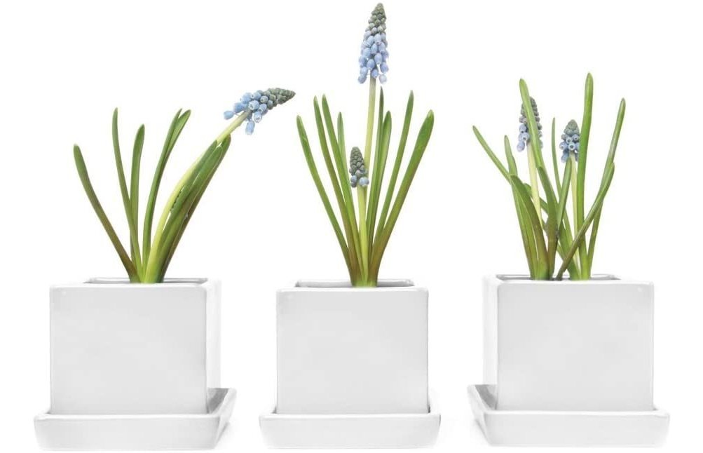 CHIVE INC se estableció hace más de 15 años y comenzaron a hacer macetas con agujeros de drenaje y platillos hace 6 años. Actualmente llevan más de 200 macetas de diferentes tamaños, colores, materiales y texturas. Además de todas estas macetas geniales, hacen miles de jarrones de cristal y cerámica y otras decoraciones divertidas para el hogar. Estoy encantado de ofrecer en mi página de Amazon sólo una pequeña selección de su catálogo, incluyendo este moderno y único trío de cubos y platillos.; Maceta única para decoración elegante del hogar: recibirás 3 macetas de cubo modular blanco con platillo. Visita mi tienda para listados de este artículo en colores alternativos.; Contenedor de plantas interiores: Chive ha diseñado esta línea de mini macetas que tienen en cuenta el cuidado y el diseño de las plantas.; Maceta de drenaje con platillo: los agujeros de drenaje en las macetas junto con las bandejas desmontables hacen que regar tus plantas sea fácil y mantendrá tus plantas felices. Cada maceta tiene capacidad para suculentas de 5 a 3.0 in, mini cactus y mini orquídeas.; Flores y plantas no incluidas. Cada maceta mide 2.5 x 2.5 x 3.0 in. Color:Blanco